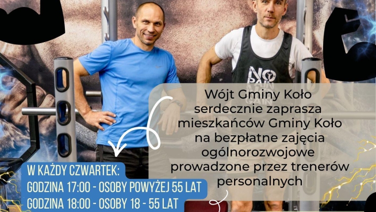 Mariusz Rybczyński – Wójt Gminy Koło zaprasza mieszkańców Gminy Koło na bezpłatne zajęcia ogólnorozwojowe prowadzone przez trenerów personalnych. Zajęcia odbywać się będą w Hali Sportowej w Kiełczewie Smużnym Pierwszym. –