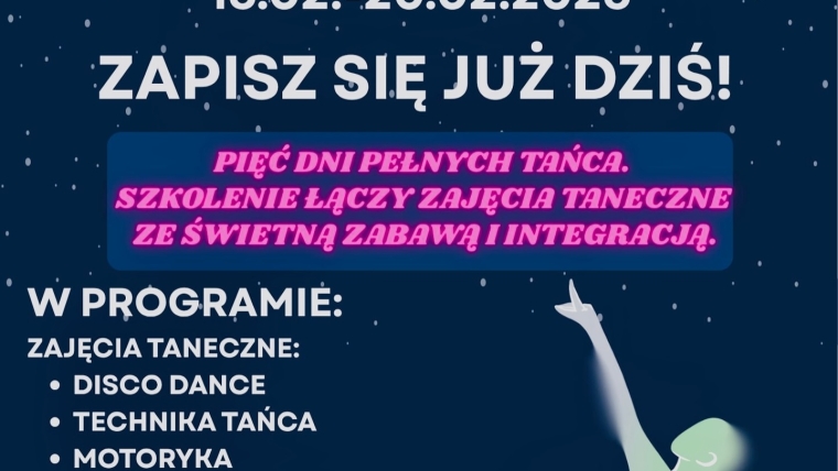 Zapraszamy wszystkich tancerzy na intensywne Zimowe Szkolenie Taneczne „Gama Winter Week 2025 ” Czeka na ciebie pięć dni pełnych tańca szkolenie łączy zajęcia taneczne ze świetną zabawą i integracją W programie : • Zajęcia Taneczne – Disco Dance – Technika Tańca – Motoryka – Akrobatyka ( dla solistów średnio i zaawansowanych) • Wycieczka • Obiady każdego dnia + wyjście do…