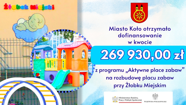 Miasto Koło otrzymało fundusze na rozbudowę placu zabaw przy Żłobek Miejski w Kole, w kwocie 269.930,00 złotych. –