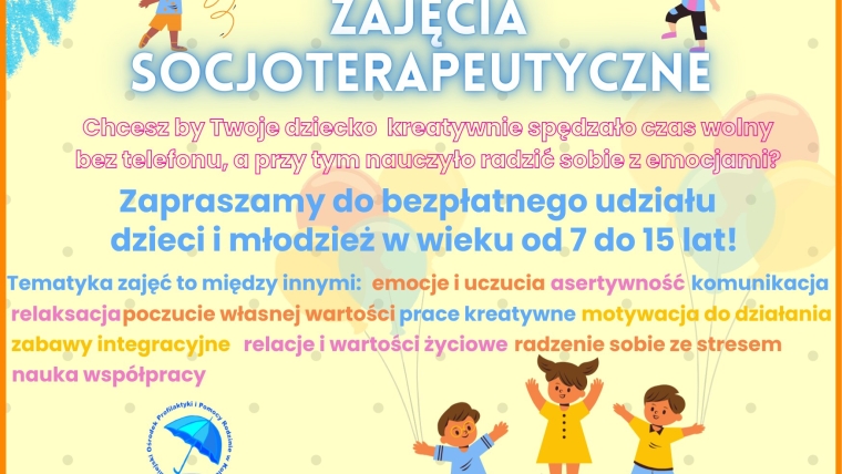 Twórczo, aktywnie i z uśmiechem – zajęcia dla dzieci i młodzieży. – Chcesz by Twoje dziecko kreatywnie spędzało czas wolny bez telefonu, a przy tym nauczyło radzić sobie z emocjami? Miejski Ośrodek Profilaktyki i Pomocy Rodzinie w Kole zaprasza dzieci i młodzież w wieku od 7 do 15 lat do udziału w bezpłatnych zajęciach socjoterapeutycznych. Tematyka zajęć to m.in.: emocje…