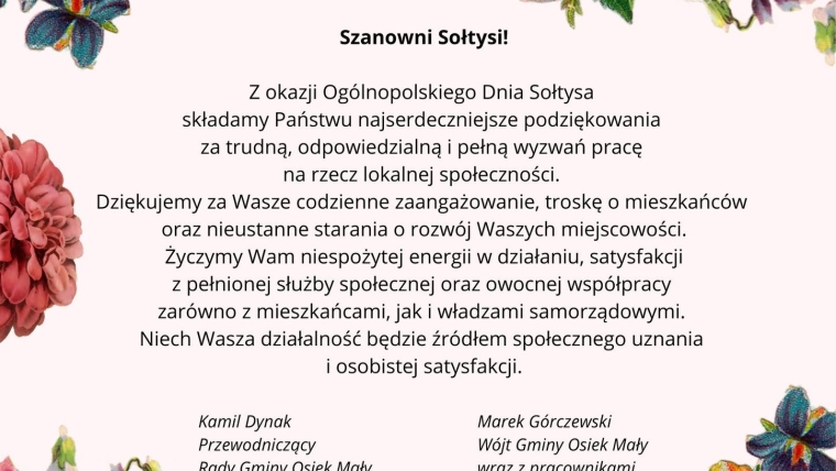 Ogólnopolski Dzień Sołtysa – 11 marca 2026 r. 11 marca, 2026 WIADOMOŚCI - GMINA OSIEK MAŁY Gmina Osiek Mały – Ogólnopolski Dzień Sołtysa – 11 marca 2026 r. – Czytaj więcej