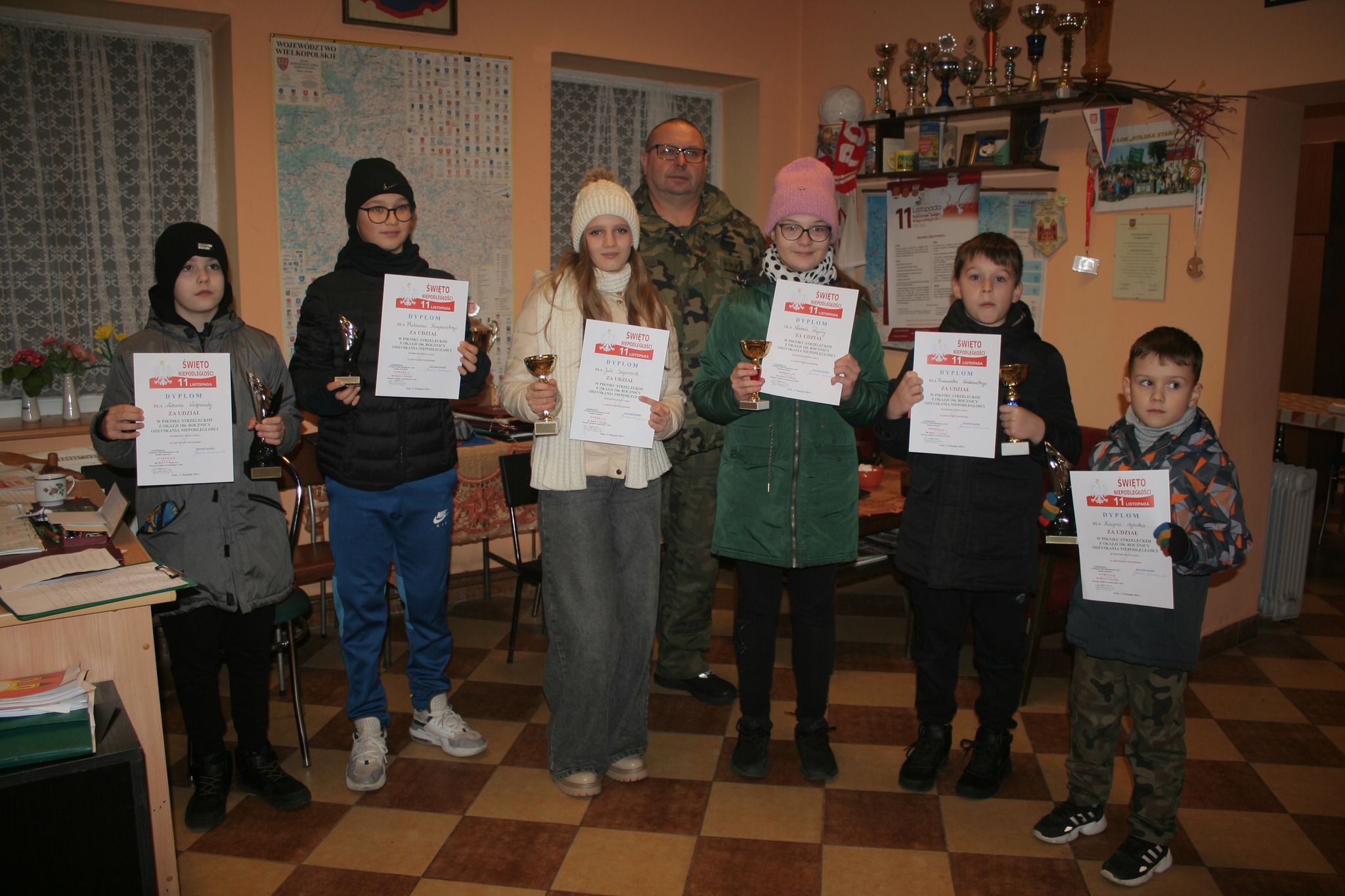 W 106. Rocznicę Odzyskania Niepodległości przez Polskę w 1918 roku, po 123 latach niewoli zaborców, Powiatowy Klub Młodzieżowy LOK „Kolska Starówka” wspólnie z Urzędem Miejskim i Muzeum Technik Ceramicznych w Kole, zaprosili 11 listopada 2024 r .dzieci i młodzież do Ośrodka LOK w Kole, na piknik: dwubój sportowo-obronny o Puchar Burmistrza Miasta Koła. O godz. 15-tej, przybyłych tak dzieci jak i osoby dorosłe powitał kierownik Klubu LOK. Wśród nich v-ce przewodniczącego Rady Miejskiej Koła Adriana Króla, radnych Teresę Brzoską i Adama Malińskiego, prezesa ZP LOK w Kole kpt. Ireneusza Wojtysiaka a także i rodziców dzieci. Przy zapalonych Pochodniach Niepodległości zebrani uczestnicy pikniku odśpiewali Hymn Narodowy. Następnie Dyrektor kolskiego Muzeum Tomasz Nuszkiewicz przybliżył zebranym wydarzenia na terenie miasta Koła sprzed 106 laty wspominając, że Koło już w godzinach wieczornych 10 listopada 1918 roku było wolne od pruskiego zaborcy. Po czym kierownik klubu LOK zaprosił młodych uczestników pikniku do rywalizacji sportowej w strzelaniu z pneumatyka do tarczy i w rzutach granatem F-1 do celu. A że w tym dniu było wyjątkowo chłodno, tak więc strzelanie jak i rzuty granatem przeprowadzono w pomieszczeniu starego klubu. Każdy z uczestników oddał po 6 strzałów do tarczy z odległości 10 m. Następnie, rywalizowano w celnych rzutach granatem F-1 do celu z odległości 5 m. Sumując uzyskane celne strzały, jak i rzuty granatem przez młodych zawodników, ustalono kolejność ich uczestników. W kategorii chłopców zwyciężył 9 letni Franek Wróblewski z Kiełczewka gm. Grzegorzew, przed 11 letnim Natanem Wojewodą z Koła , trzecim był 11 letni Mateusz Krzyżański z Koła a czwartym 6 letni Kacper Hyżak, również z Koła. W kategorii dziewcząt zwyciężyła 12 letnia Natalia Piguła z Kościelca, przed 12 letnią Julią Szymczak z Daniszewa gm. Kościelec. Konkurencję sportową prowadził Jarosław Grochociński. Organizatorzy pogratulowali wszystkim uczestnictwa w pikniku, obdarowując zwycięzców pucharami ufundowanymi przez Urząd Miasta w Kole. Były pamiątkowe dyplomy, pudełka słodyczy a dla dziewcząt po zegarku na rękę. Do stołu, na ciepły poczęstunek zaprosiły wszystkich uczestników pikniku, Małgorzata Stężewska i Marlena Piguła.