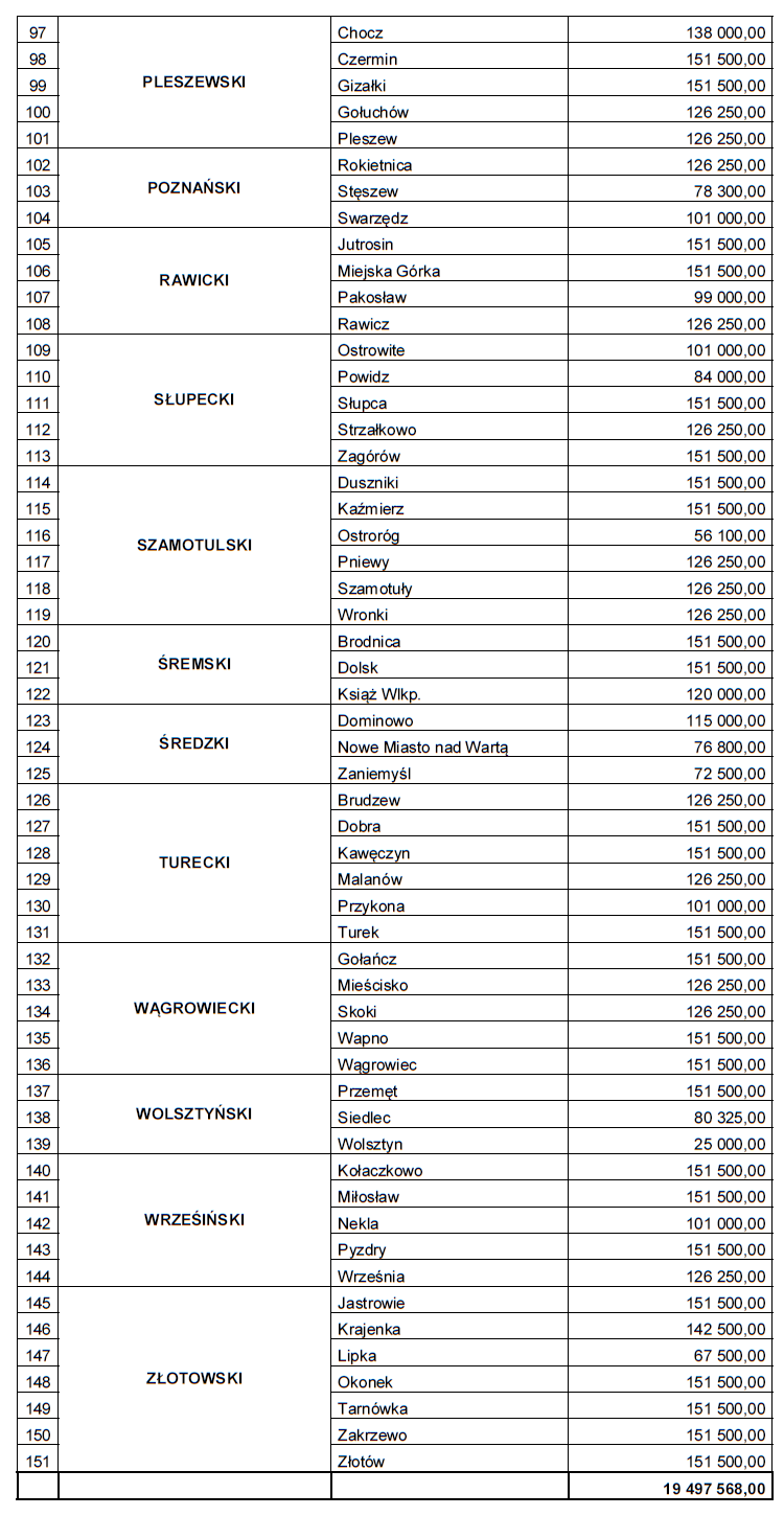 W załączniku lista samorządów, które otrzymały wsparcie.