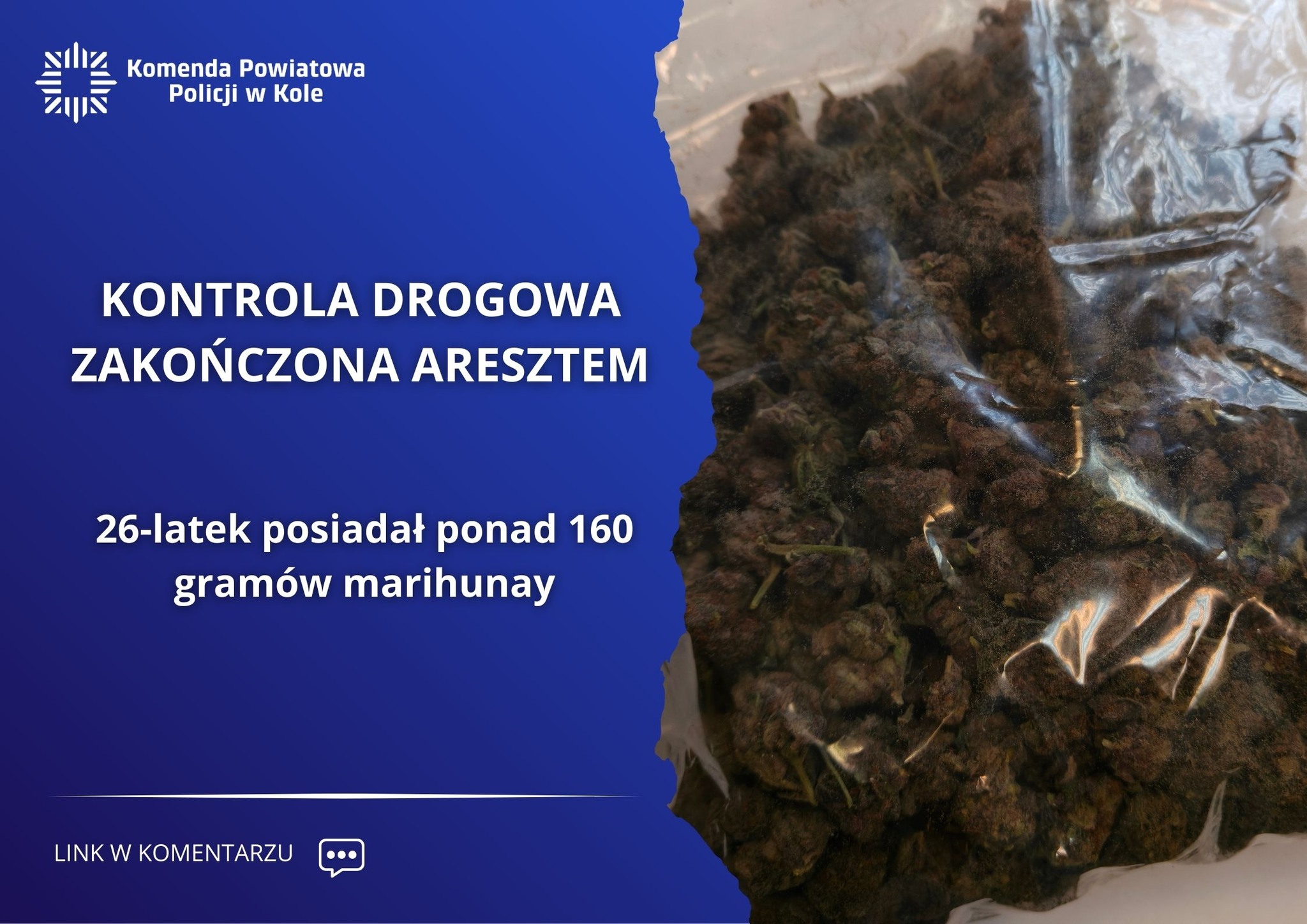 W trakcie czynności funkcjonariusze ujawnili przy mężczyźnie prawie 15 gramów marihuany. To jednak nie był koniec sprawy. Podczas dalszych działań policjanci zabezpieczyli kolejne narkotyki należące do 26-latka – łącznie ponad 160 gramów marihuany.