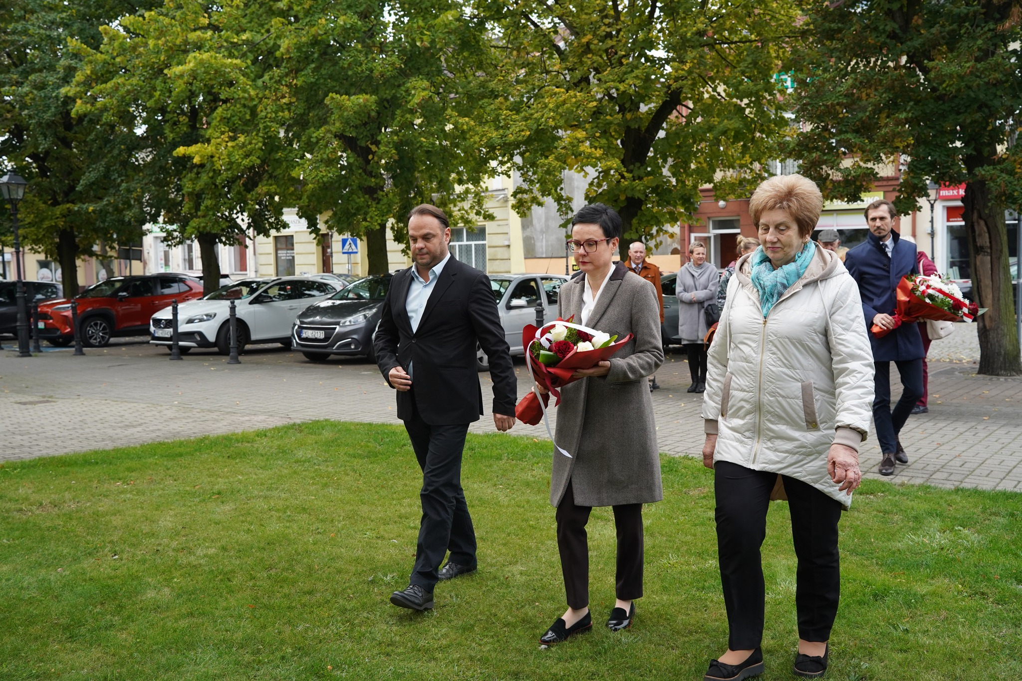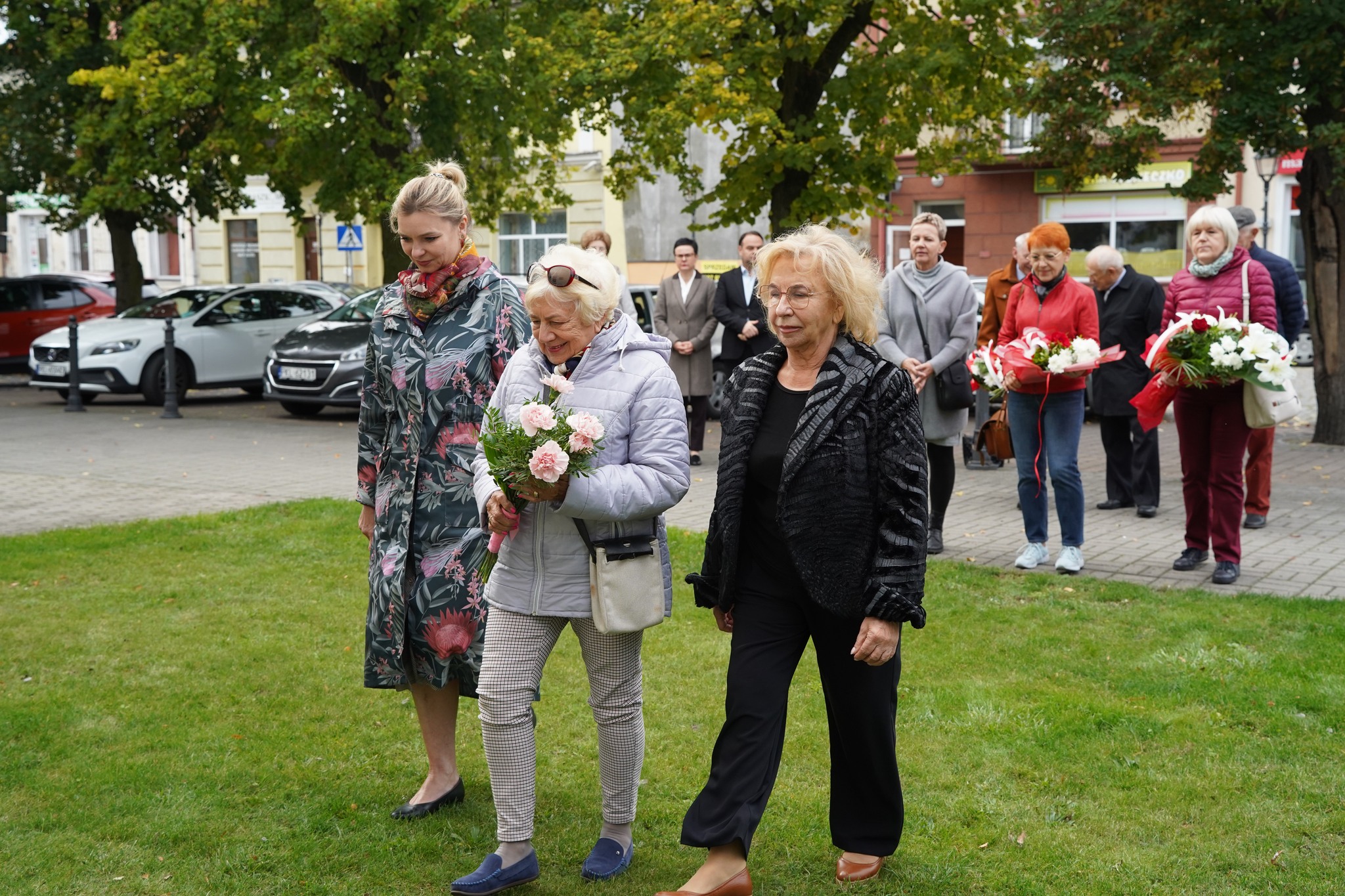 Wieloletnim zwyczajem, delegacje przybyły dziś pod tablicę pamiątkową usytuowaną na ścianie Ratusza Miejskiego. Spotkaniu przewodniczyła Zastępca Burmistrza Monika Ciesielska. Życiorys pisarki przybliżył Dyrektor MTC Tomasz Nuszkiewicz. Wśród oddających hołd nie mogło zabraknąć P. Haliny Grabowskiej, wieloletniej dyrektor MDK, która przez całe życie zawodowe propagowała twórczość Fleszarowej-Muskat, przedstawicieli biblioteki, która tę spuściznę pielęgnuje, osób, które zabiegały o przeniesienie tablicy pamiątkowej z budynku SOS-W na ratusz, przewodniczącego Rady Mariusza Hanefelda i naszej aktorki Agaty Dziedziczak – która wcielała się w postać pisarki zarówno w spektaklu Dariusza Matysiaka, jak i w Kolskim Teatrze Otwartym im. Cz. Freudenreicha. Obecny był sekretarz powiatu Artur Szafrański, reprezentacja MDK, regionaliści i osoby, które każdego roku pamiętają o rocznicy.