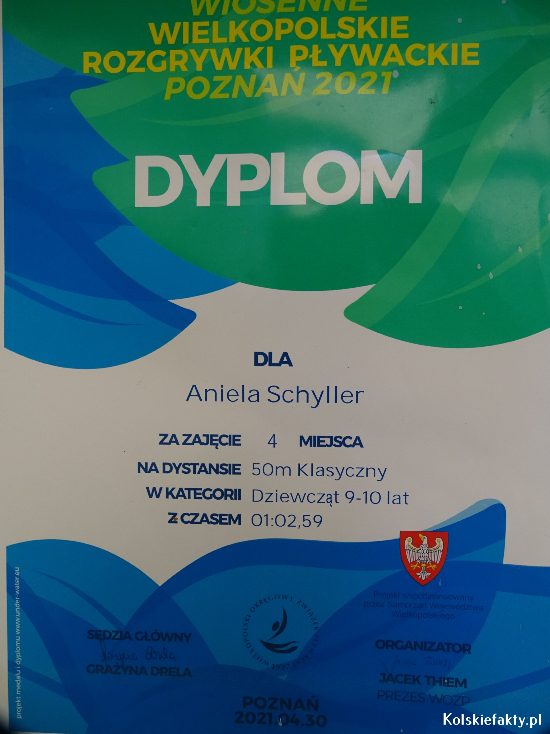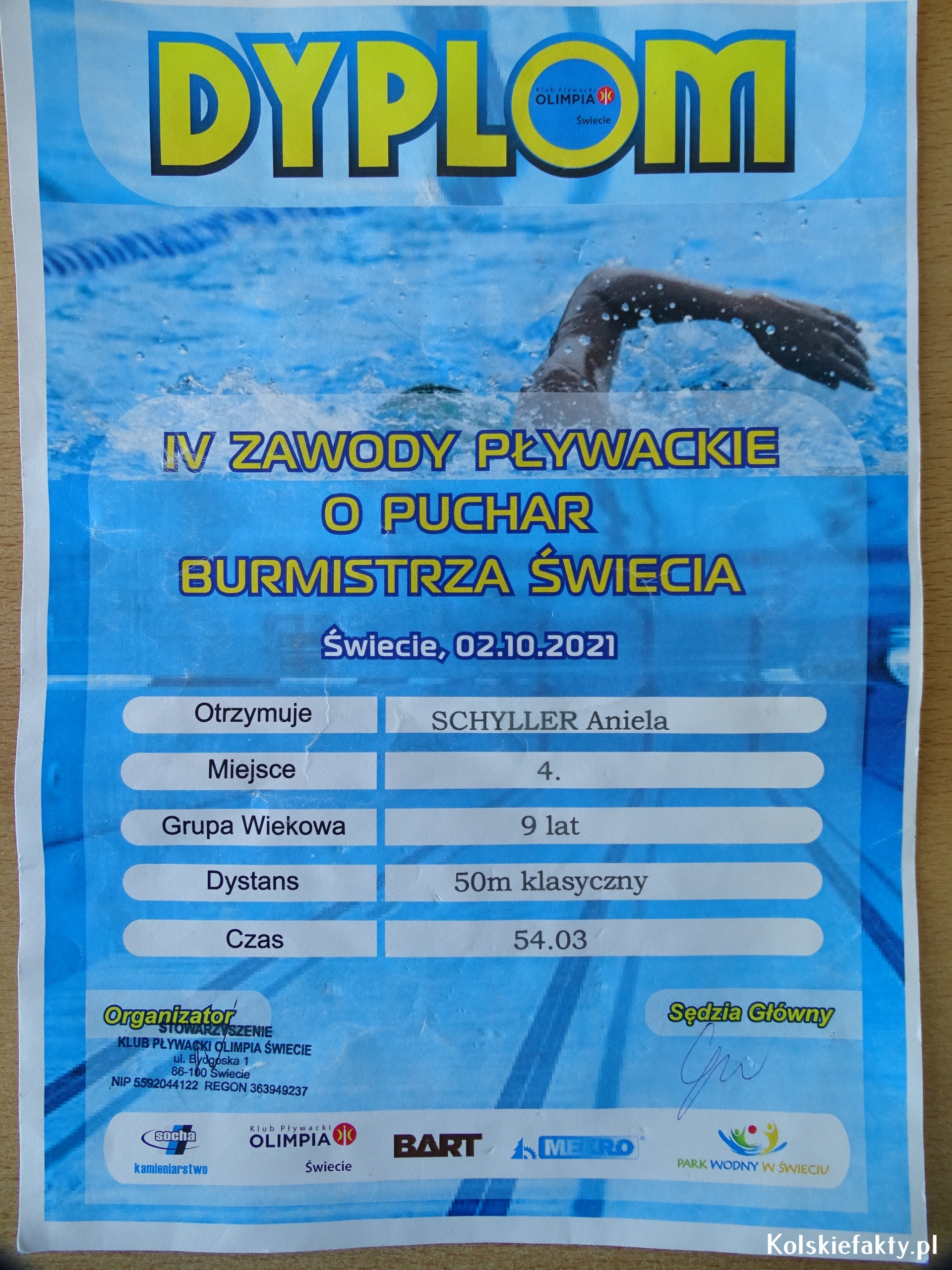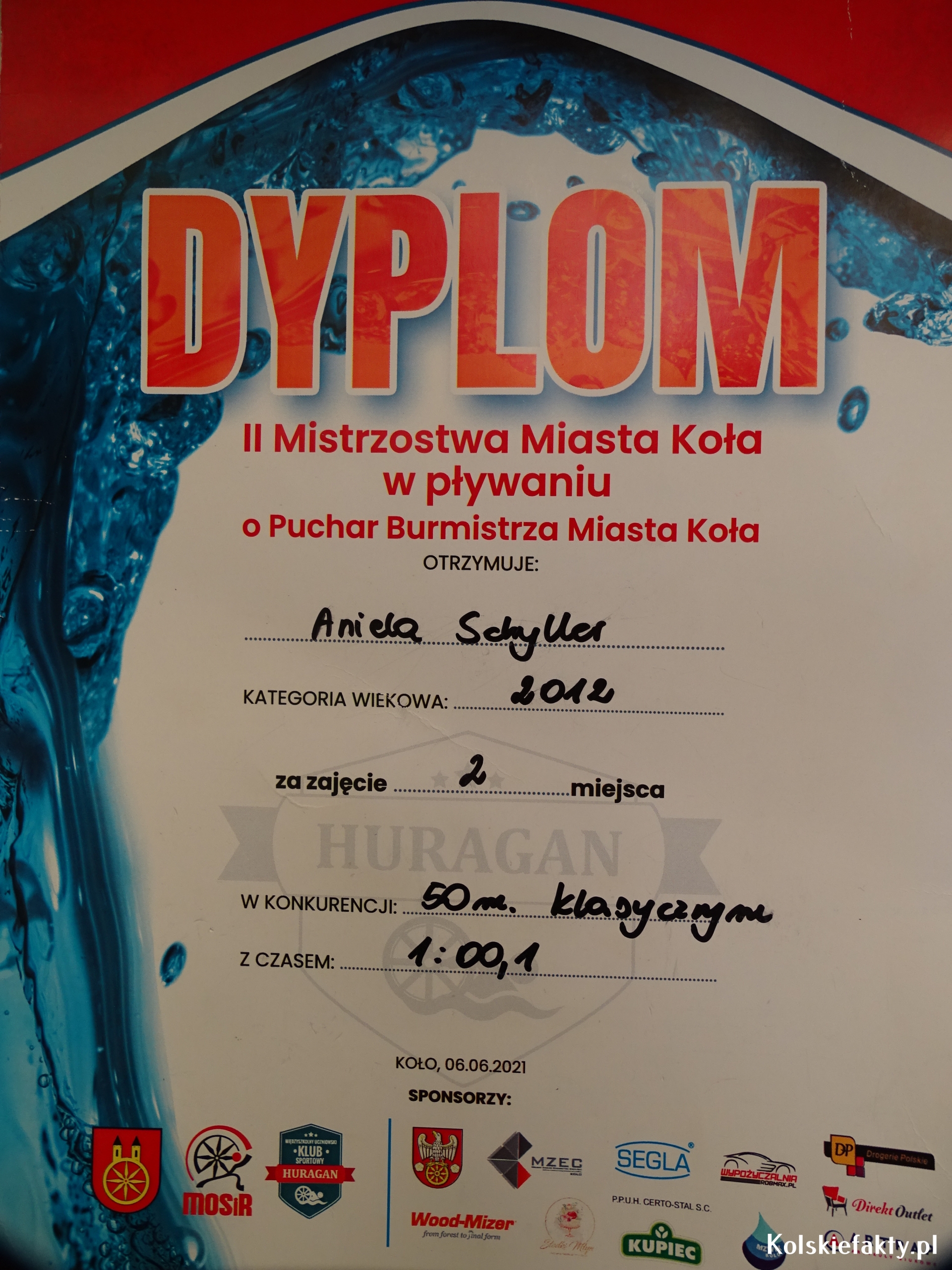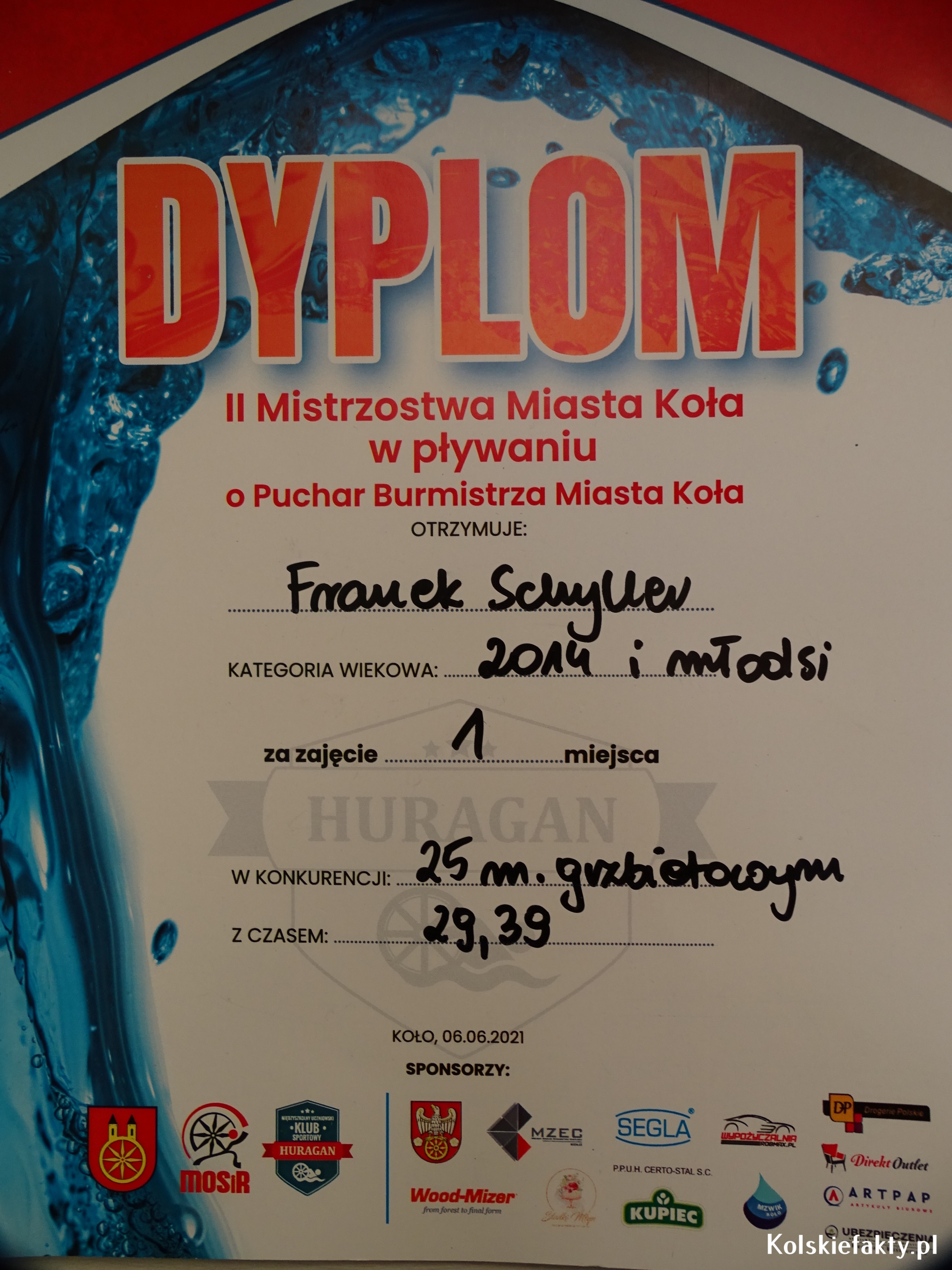 Dzieci znane są z chłonięcia wszelkich informacji i umiejętności oraz szybkiego przyswajania wiedzy. Z tego względu, niektóre umiejętności, jak np. pływanie, warto rozwijać od najmłodszych lat. Tak też było w przypadku Anieli i Franka Schyller- rodzeństwa, którego wspólną pasją jest pływanie. Oboje uczą się w Szkole Podstawowej nr 1 w Kole. Aniela jest uczennicą klasy trzeciej, Franek w tym roku rozpoczął naukę w klasie pierwszej. Woda jest zdecydowanie ich żywiołem. Od zawsze uwielbiali zabawy w wodzie i co najważniejsze, wcale się jej nie bali. Nauczyli się pływać na basenie pod okiem wykwalifikowanych instruktorów. Oboje trenują w Klubie MUKS Huragan Koło. Trenerem Anielki jest Michał Oczkowski, natomiast Franka trenuje Eryk Tomaszewski. Mając 6 lat zaczęli pływać w grupach pływackich. W wieku 7 lat wzięli udział w pierwszych zawodach pływackich.