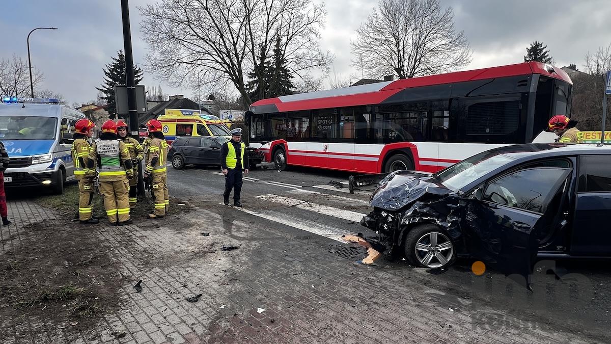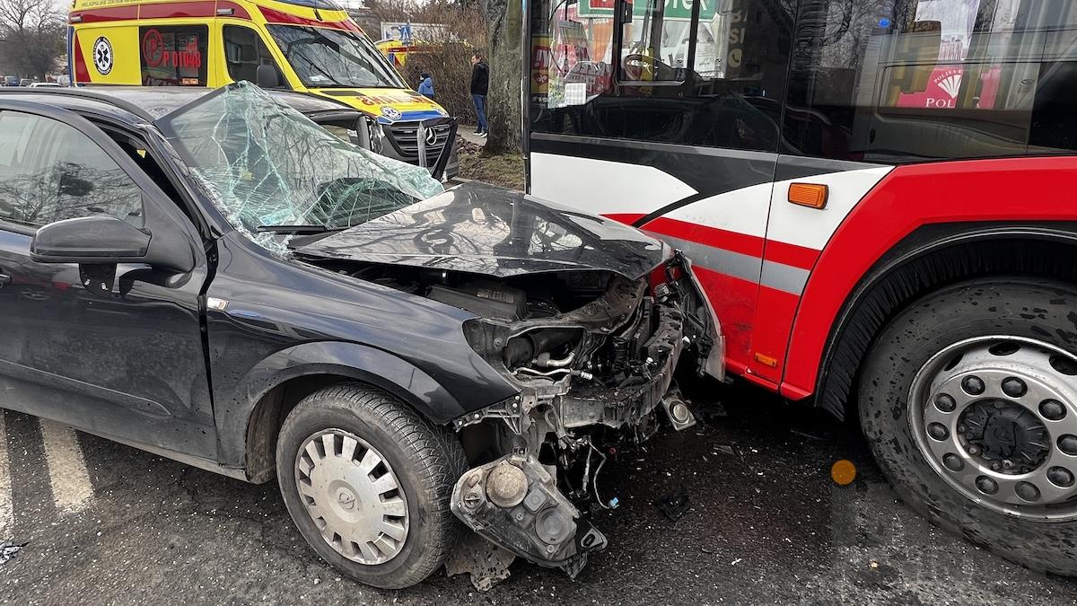 Do zdarzenia doszło po 13.00. Autobusem podróżowało 5 pasażerów i kierowca, nie odnieśli obrażeń. Kierowca Opla i dwóch pasażerów Volkswagena, które brały udział w wypadku są pod opieką zespołu ratownictwa medycznego. Na miejscu zdarzenia jest straż pożarna i policja, która ustala przyczynę wypadku.