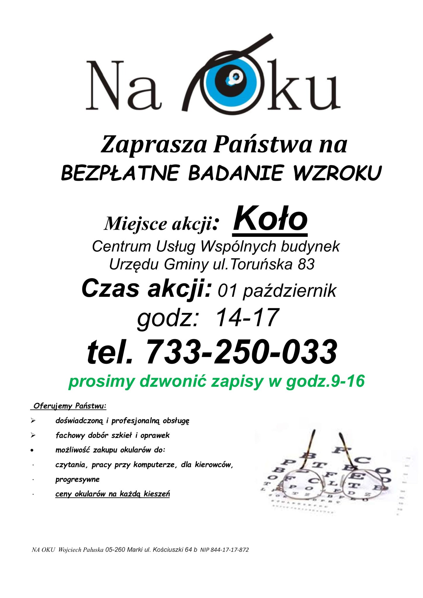 22 września, 2020 Aktualnosci Bezpłatne badanie wzroku dla mieszkańców Gminy Koło ZAPRASZAMY ! 01.10.2020 r. w godz. 14.00-17.00 #GminaKoło źródło:GMINA KOŁO Udostępnij: