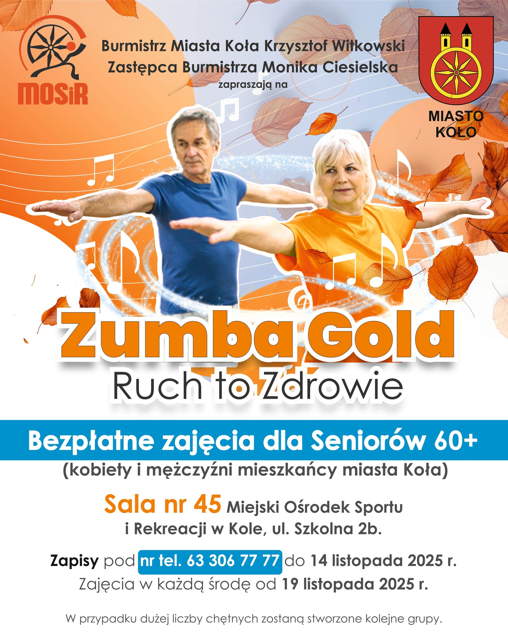Drodzy Seniorzy, już 14 listopada ruszają bezpłatne zajęcia Zumba Gold. To doskonała okazja, by połączyć ruch, muzykę i świetną zabawę.