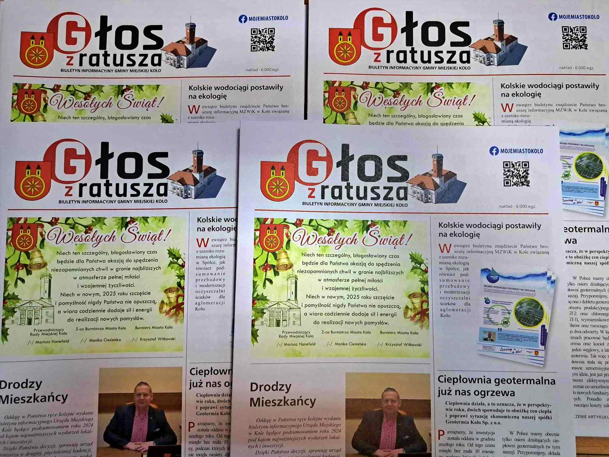 Biuletyn informacyjny Gminy Miejskiej Koło „Głos z Ratusza” jest już gotowy! To jedyne tegoroczne wydanie, toteż zawiera podsumowanie najważniejszych wydarzeń i inwestycji dokonanych w 2024 roku. Zostanie doręczony do Państwa domów jeszcze przed świętami. Życzymy miłej lektury!