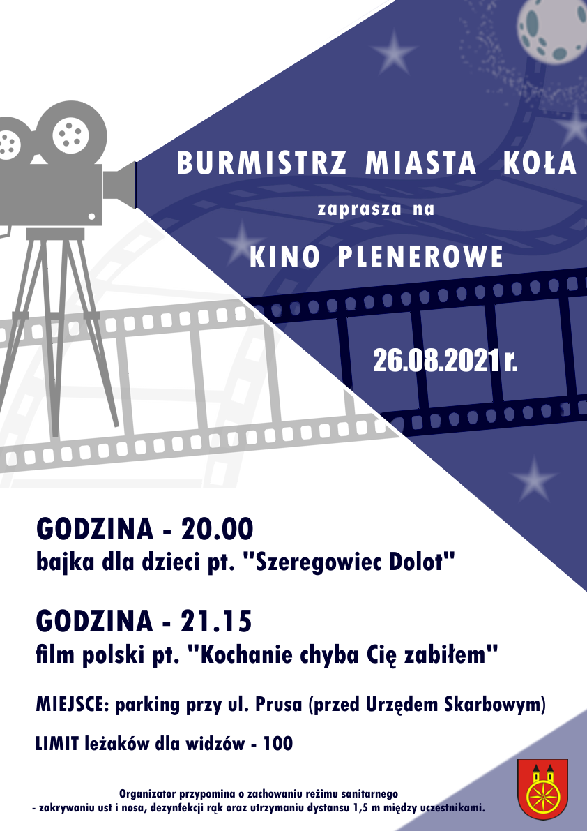 17 sierpnia, 2021 Aktualnosci Kulturalne W przyszłym tygodniu w Kole – kino plenerowe! Serdecznie zapraszamy, wstęp wolny. źródło:UM w Kole Udostępnij: