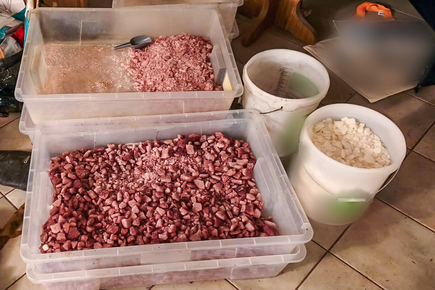 Podczas przeszukań zabezpieczono ponad 200 kilogramów klofedronu w postaci krystalicznej, przygotowanego do dalszej dystrybucji, a także ponad 500 litrów tej substancji w formie płynnej. Szacunkowa wartość czarnorynkowa zabezpieczonych narkotyków przekracza 28 milionów złotych.