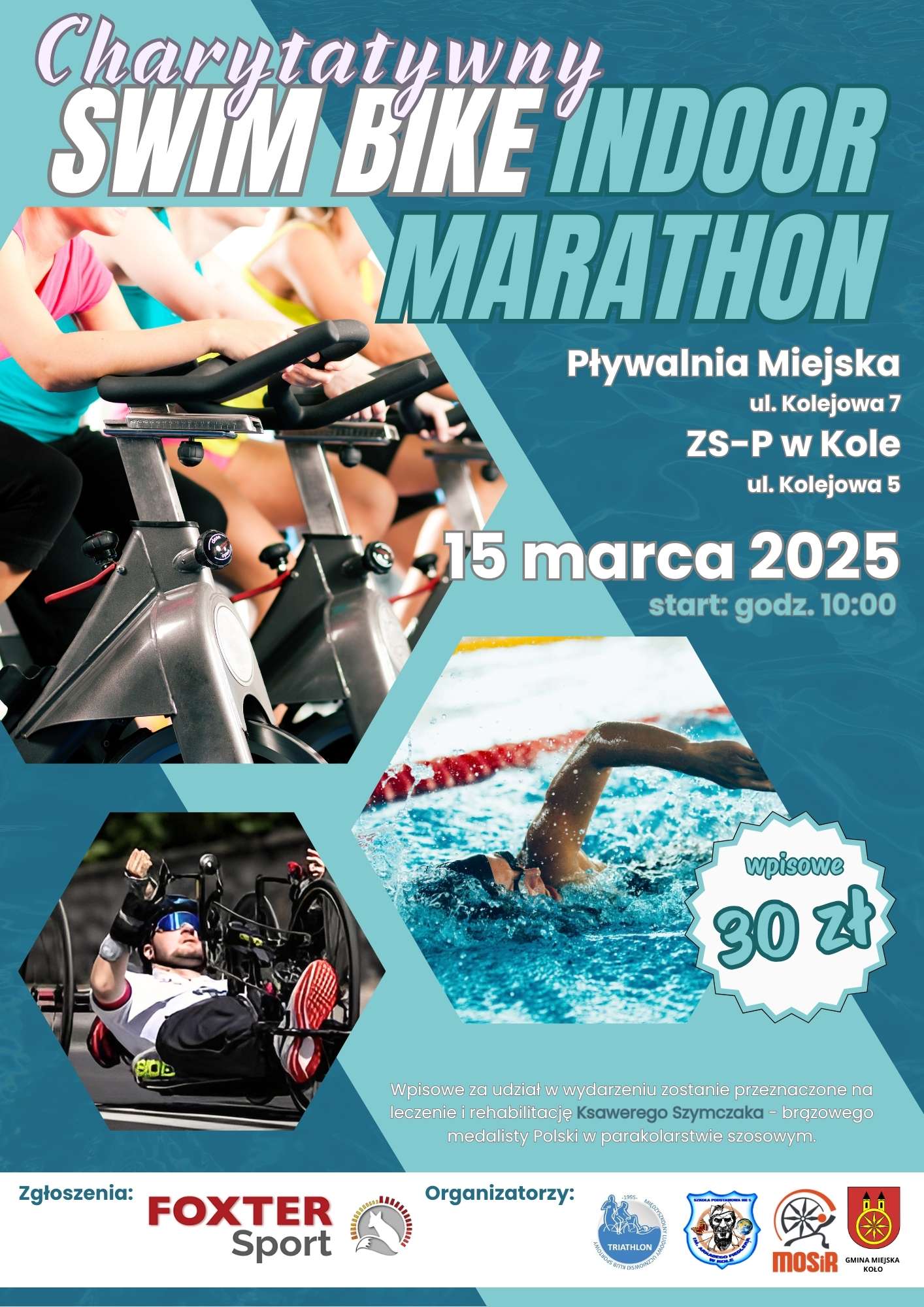 Jedyna taka okazja, aby połączyć przyjemne z pożytecznym. Jeśli potrafisz pływać i lubisz jeździć na rowerze to zapraszamy serdecznie 15 marca br. do wzięcia udziału w Charytatywnym Swim Bike Indoor Marathon.