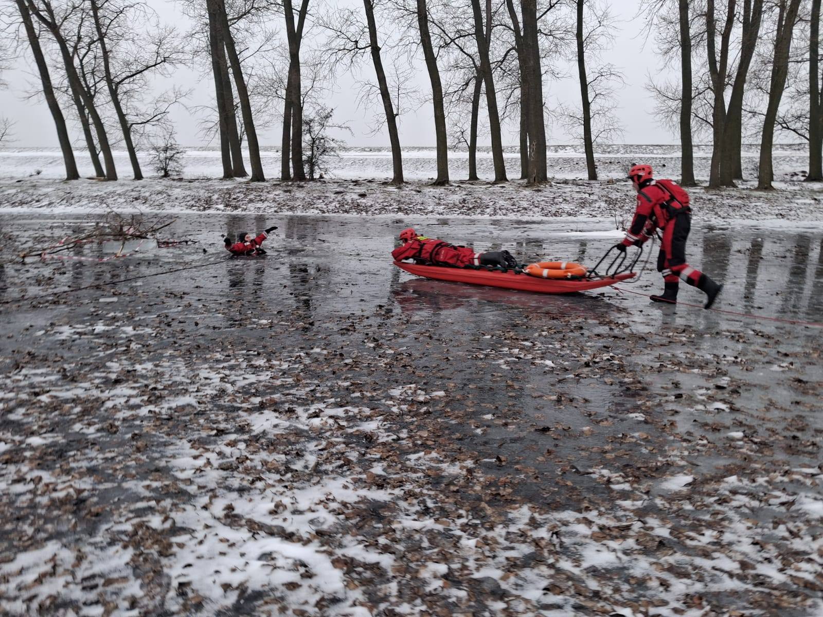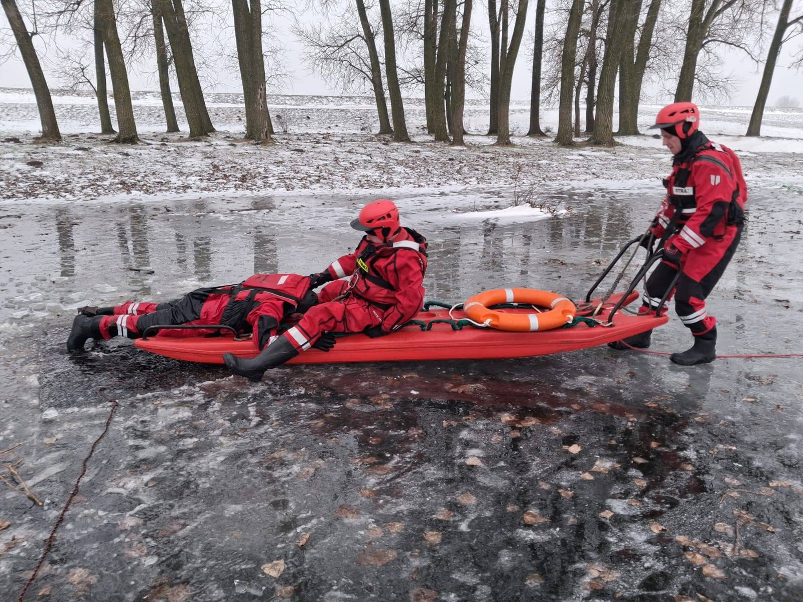 Ćwiczenia z zakresu ratownictwa na lodzie.