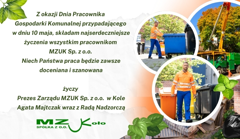 Dzień Pracownika Gospodarki Komunalnej – życzenia od Prezes MZUK w Kole Agaty Majtczak
