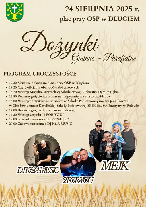 – Rozstrzygnięcie konkursów: na najpiękniejszy wieniec dożynkowy, na najpyszniejsze ciasto drożdżowe oraz na najlepszą nalewkę,