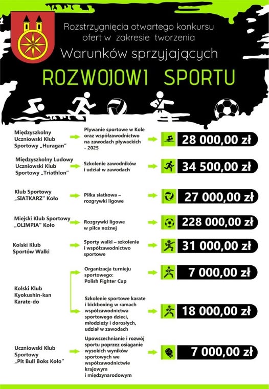W sumie, na rozwój sportu w mieście Kole Gmina Miejska Koło przekazała 380.500 zł