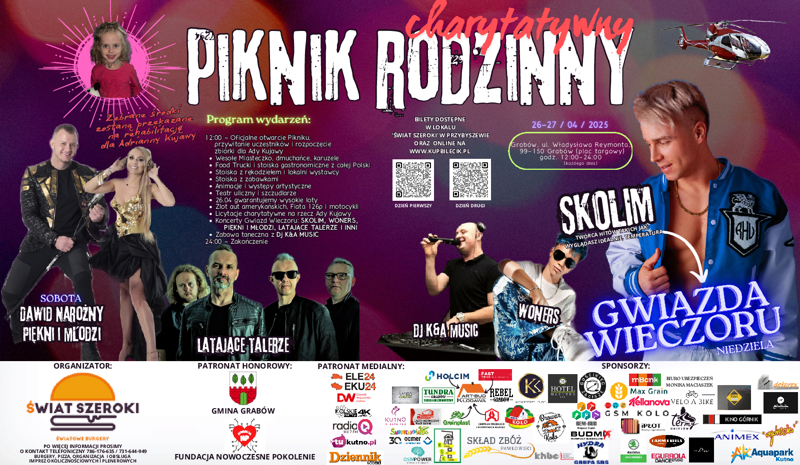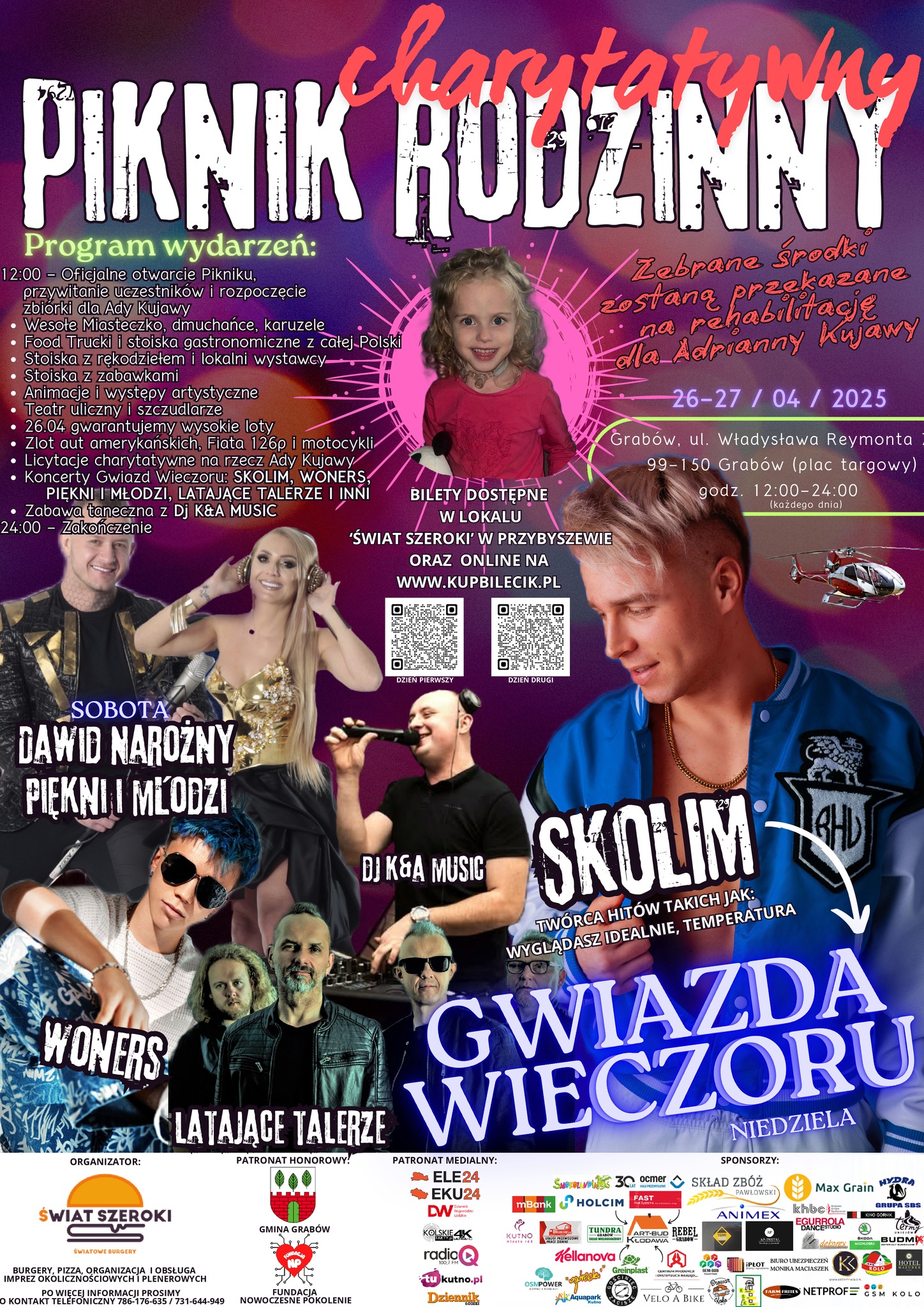 W dniach 26-27 kwietnia 2025 roku w miejscowości Grabów (woj. łódzkie) pod Patronatem Honorowym Gmina Grabów odbędzie się II Charytatywny Piknik Rodzinny. To wyjątkowe wydarzenie organizowane jest w szczytnym celu – zbiórki środków na rehabilitację po operacji serca dla czteroletniej Ady Kujawy.