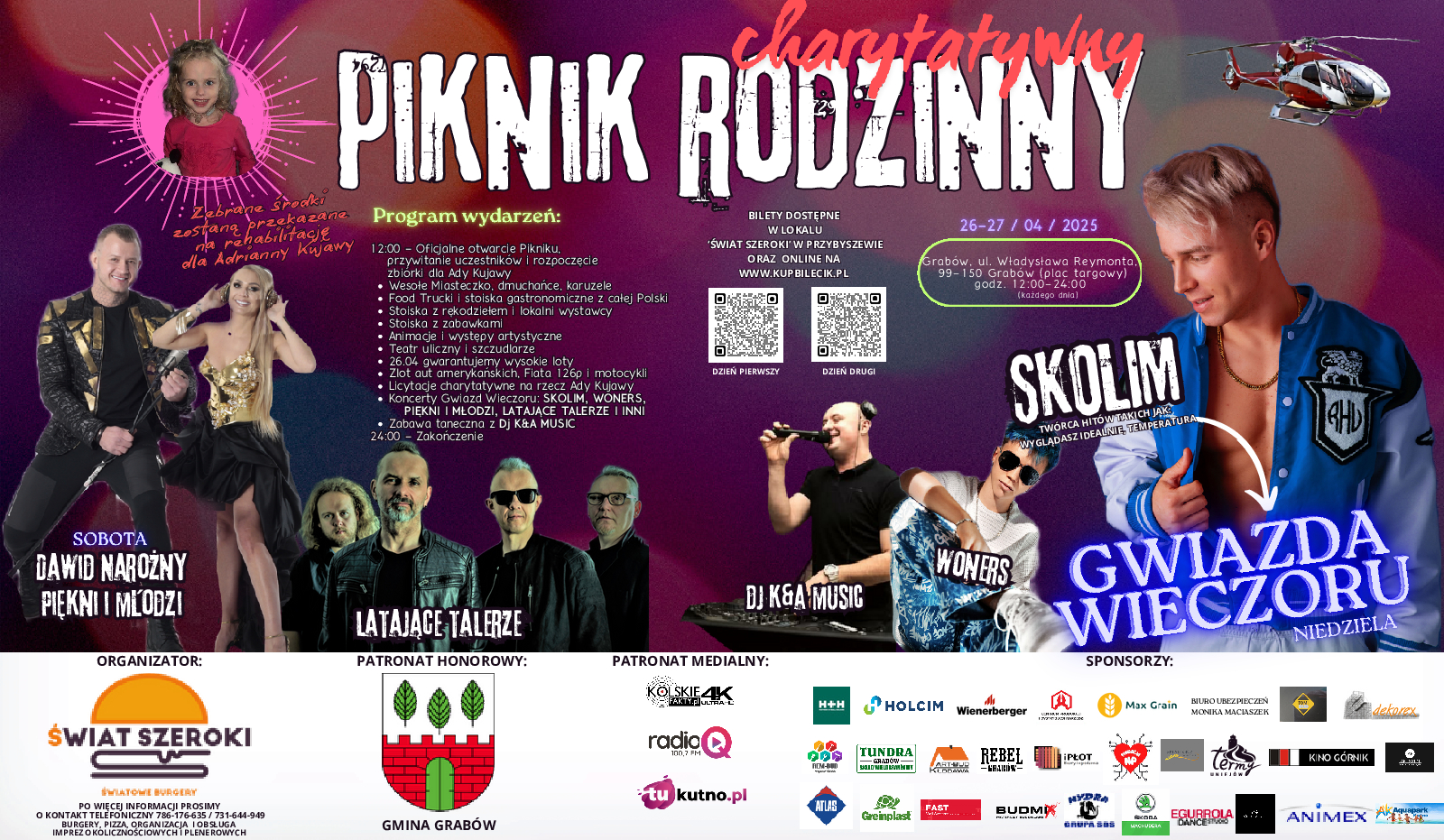 W dniach 26-27 kwietnia 2025 roku w miejscowości Grabów (woj. łódzkie) pod Patronatem Honorowym Gmina Grabów odbędzie się II Charytatywny Piknik Rodzinny. To wyjątkowe wydarzenie organizowane jest w szczytnym celu – zbiórki środków na rehabilitację po operacji serca dla czteroletniej Ady Kujawy.