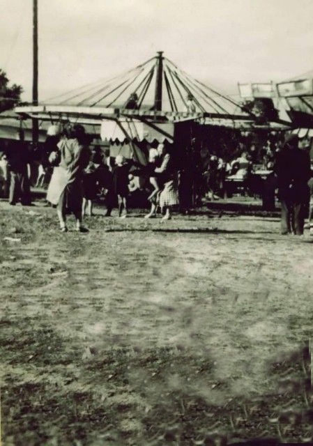 Na początku lat 70-tych zanim pojawiła się Restauracja BASZTOWA na dawnym, wolnym od zabudowy placu na Kolskiej Starówce w latach 50 i 60 ubiegłego stulecia służył on jako miejsce w Kole dla objazdowych czy to cyrków, czy wesołych miasteczek. Dla nas, nie tylko młodych mieszkańców Koła, każdy ich przyjazd do Koła był sporym wydarzeniem. Szczególnie my, młode Chłopaki z Wyspy mieliśmy i w tym swój oczekiwany interes, bo za przynoszenie wody z rzeki Warty lub z pompy na Placu PZPR (obecnie Stary Rynek) dla obsługi cyrku wpuszczani byliśmy na występy pod namiot. Głośna w tamtym czasie w Kole była sensacyjna ucieczka z cyrku słonia i jego wędrówka po kolskich ulicach, zanim go schwytano. A „Wesołe miasteczko”? To karuzele, huśtawki, strzelnice z pneumatyka i celne strzały do kwiatków, pluszowych maskotek zatkniętych w szklanych lufkach od papierosów, czy lustrzane beczki śmiechu. Raj dla dzieciarni. Karuzele nie były wtedy napędzane silnikiem elektrycznym ale to my, młode chłopaki, biegając po drewnianym podeście na górze karuzeli, popychając przed sobą drewniane żerdzie, wprawialiśmy ją w ruch. Przy powiększeniu zdjęcia widać postaci. W zamian, otrzymywaliśmy bilety na przejażdżkę na tej karuzeli. Pamiętam siedzący pod karuzelą chyba jej szef przygrywał na guzikowej harmonii nogą poruszając pedał dołączonego miecha do tej harmonii. Bawiliśmy się wyśmienicie. Nie znaliśmy komputerów, telewizji, za to tu na Kolskiej Starówce znaliśmy się wszyscy nawzajem i pomimo czasami jakichś tam nieporozumień przyjaźniliśmy się podczas naszych wspólnych zabaw.
