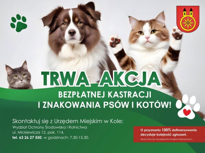 Kastracja i trwałe znakowanie psów i kotów utrzymywanych przez mieszkańców Miasta Koła oraz kotów wolno żyjących.