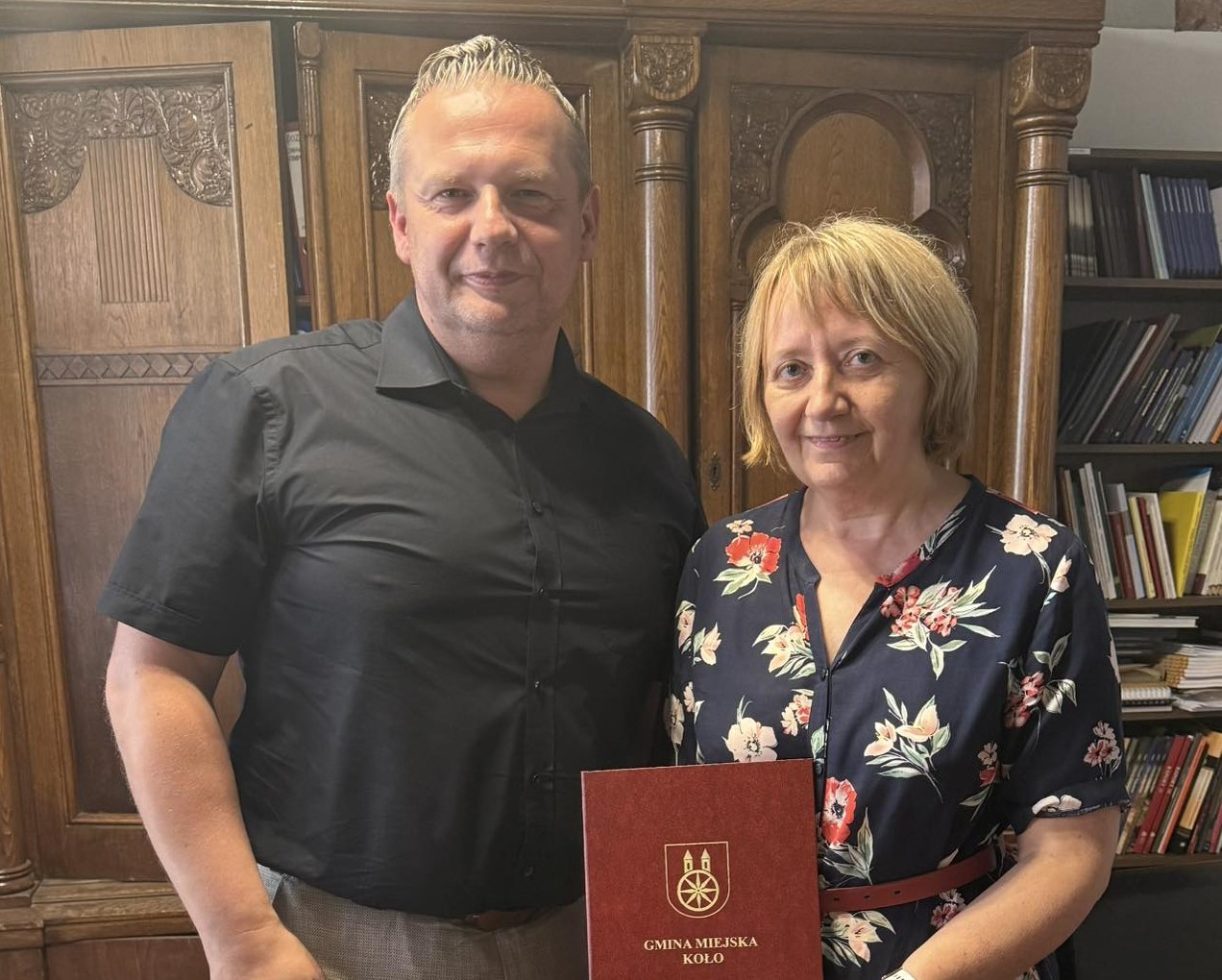 Kolski Burmistrz Krzysztof Witkowski podziękował odchodzącej na emeryturę Wielkopolskiej Wojewódzkiej Konserwator Zabytków Jolancie Goszczyńskiej za wszelkie działania przy zabytkach na terenie Koła. W naszym mieście prowadzonych jest wiele prac związanych z ochroną dziedzictwa kulturowego, zatem czuwanie nad prawidłowością badań i prac konserwatorskich, restauratorskich, architektonicznych czy robót budowlanych jest niezwykle ważne. A Pani Jolanta Goszczyńska wypełniała swe zadania nie tylko profesjonalnie, ale również z pasją inspirującą do dalszej troski o nasze wspólne dziedzictwo.