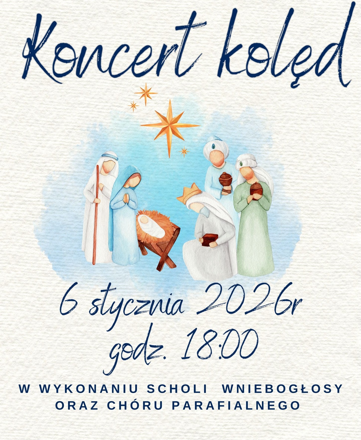w Parafii Matki Bożej Częstochowskiej – 7:30, 9:00, 10:30, 12:00 i 17:00. Parafialny Orszak Trzech Króli wyruszy sprzed kapliczki na ul. Blizna o godz. 10:10. Natomiast o godz. 18.00 „Koncert Kolęd” w wykonaniu scholi parafialnej wNieboGłosy oraz chóru parafialnego.