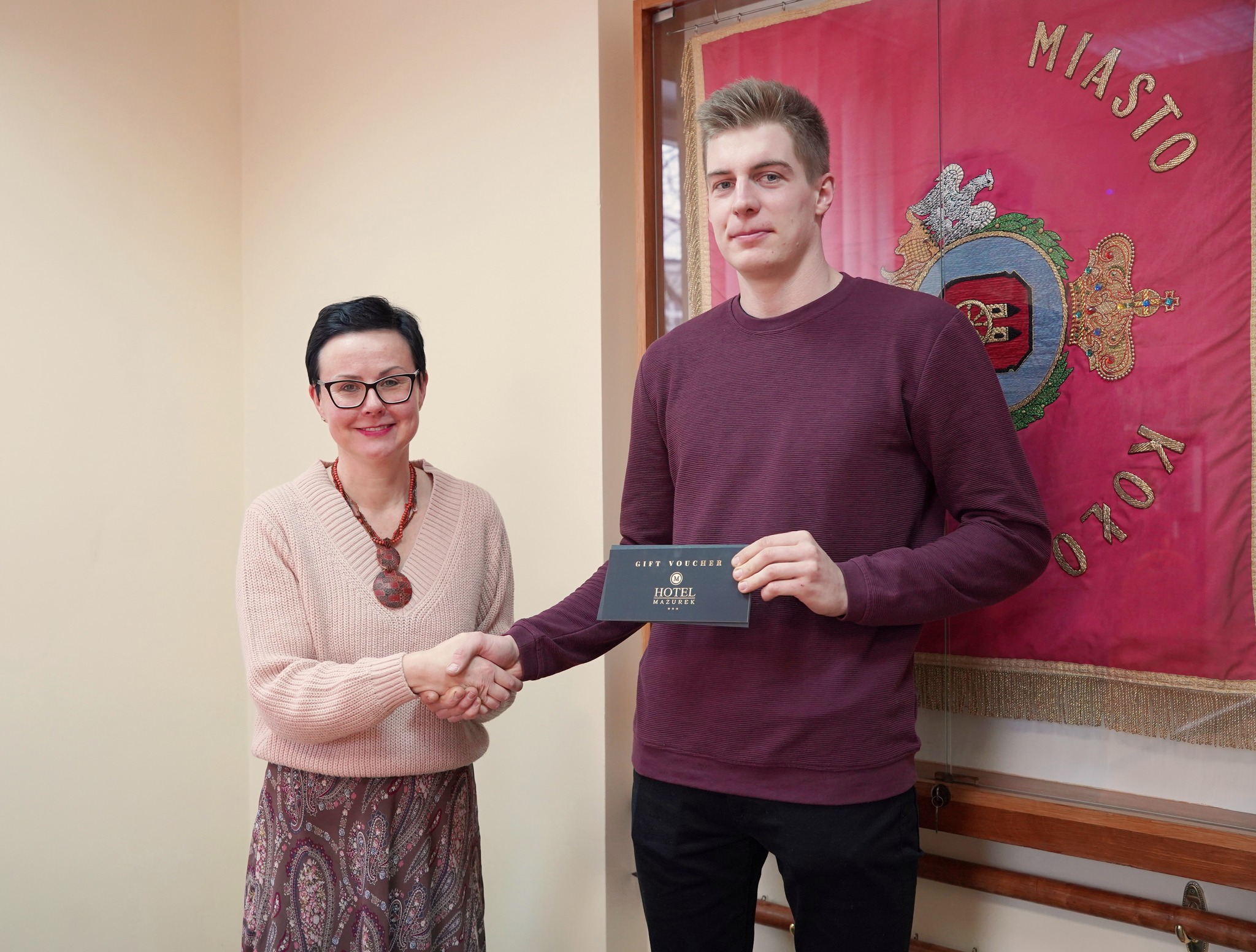 Zwycięzcą konkursu i zdobywcą ufundowanego przez Burmistrza vouchera na kolację dla dwóch osób w Restauracji Córka Mazurka został Pan Kamil Tęgos. Nagrodę w imieniu włodarza przekazała Zastępca Burmistrza, Monika Ciesielska.