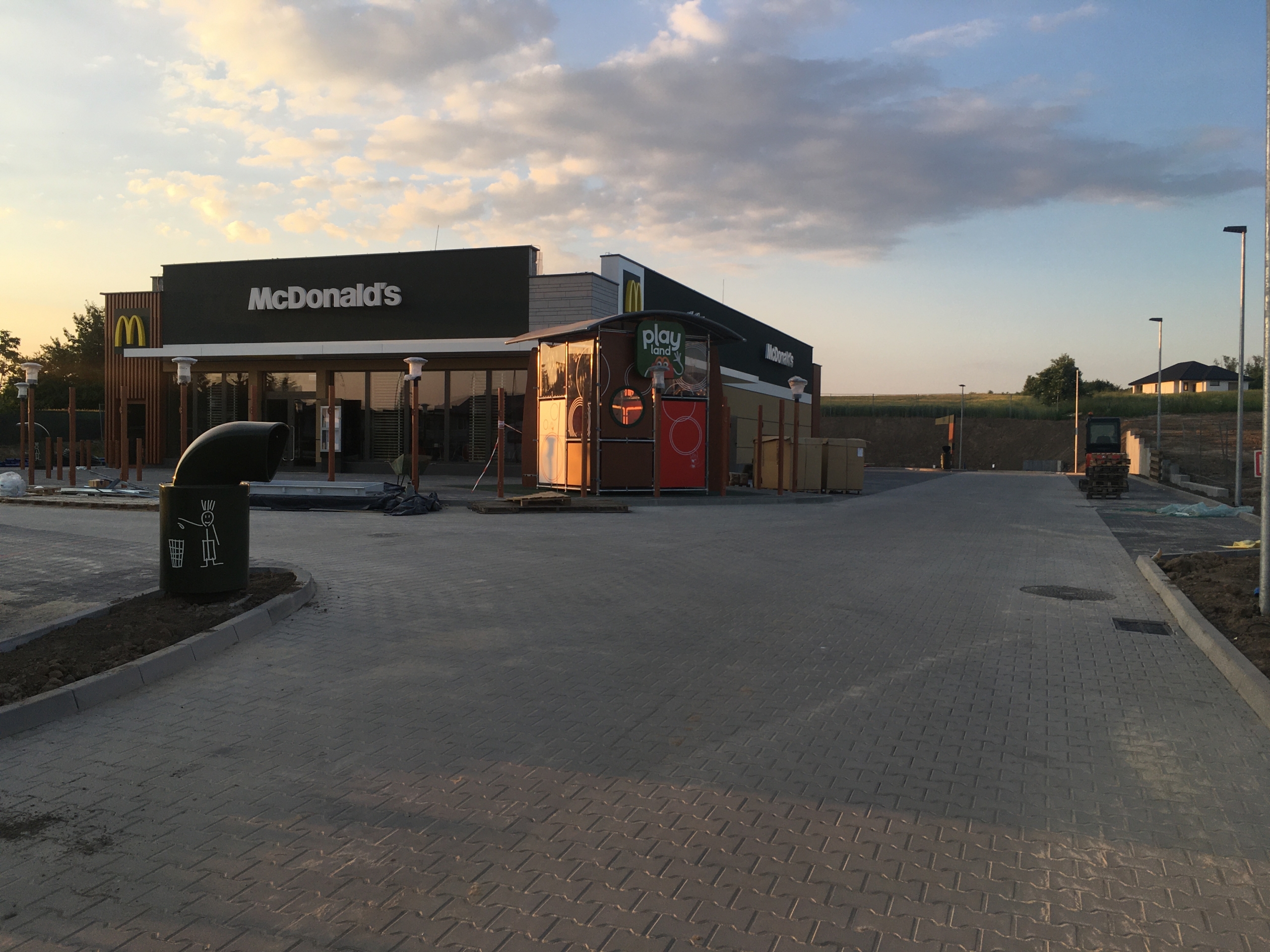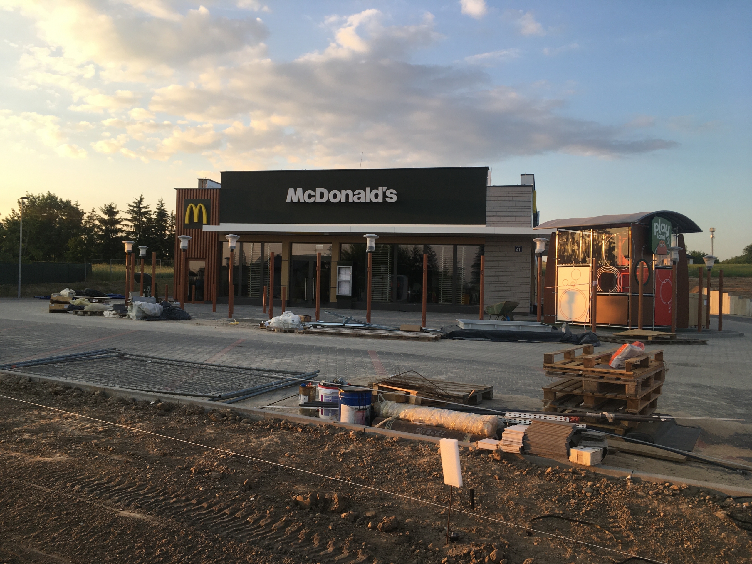 Restauracja McDonald’s budowana w Kole przy ul.Dąbskiej z zewnątrz wygląda już niemal finalnie.Z zewnątrz budynek Kolskiego Maca i otoczenie są już prawie gotowe. Przy budynku jest już niezbędna infrastruktura tzw.Mc Drive,taras,oświetlenie i mała architektura w postaci, koszy, znaków informacyjnych czy kącika zabaw dla dzieci. W środku lokalu trwają końcowe prace przy wykańczaniu i wyposażaniu restauracji.Jak widać pozostaje tylko porządkowanie i McDonald’s może przyjąć pierwszych gości.
