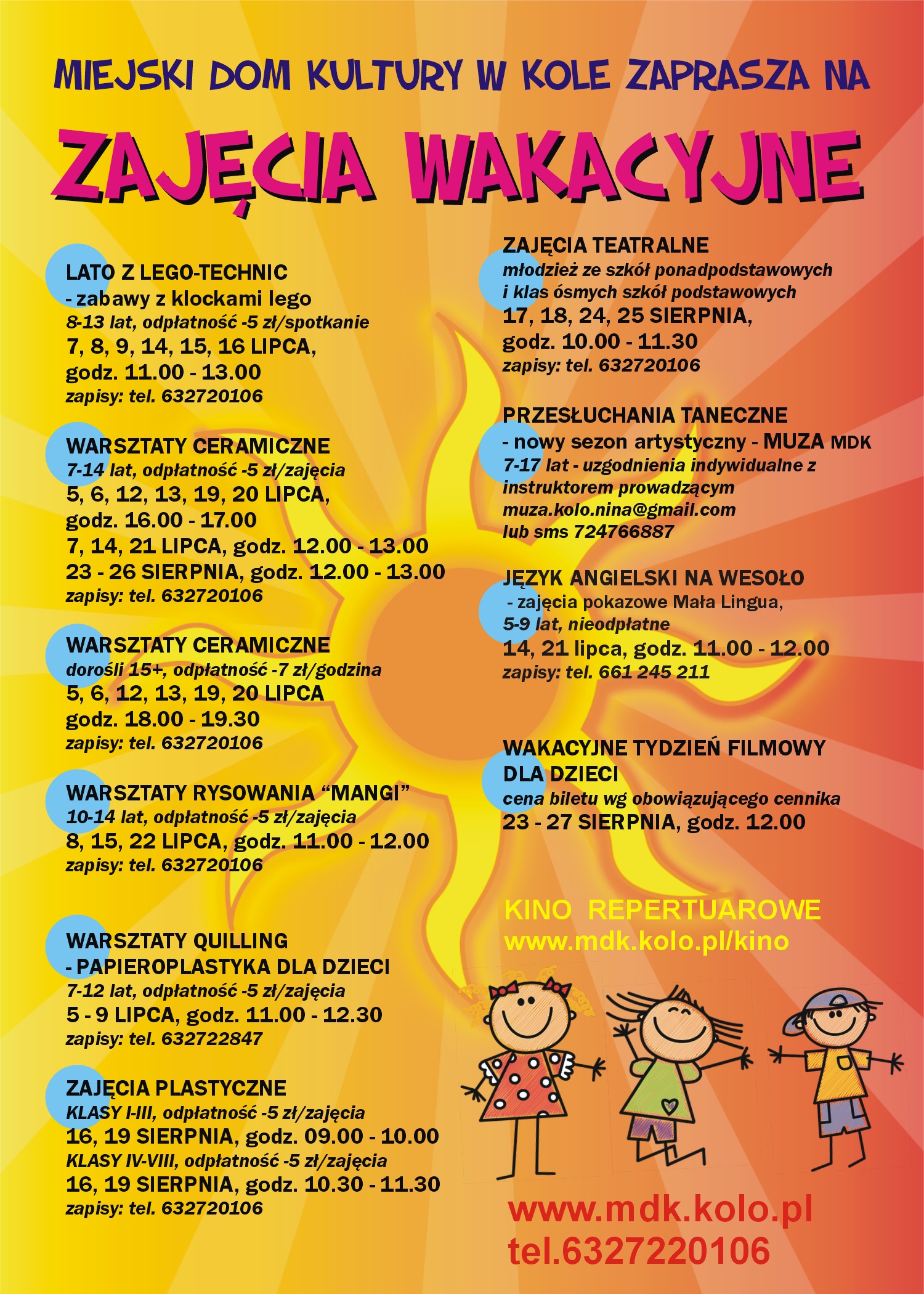 MDK w Kole zaprasza do udziału w zajęciach wakacyjnych!