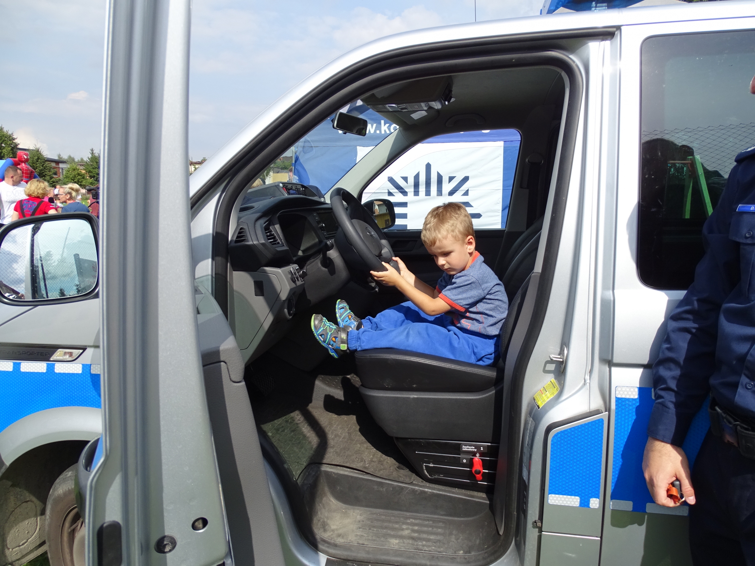 Swoje stoisko mieli też policjanci. W tym dniu każde dziecko mogło przez chwilę wcielić się w rolę strażaka czy policjanta. Mundurowi pozwolili najmłodszym przymierzyć sprzęt i umundurowanie używane podczas akcji interwencyjnych oraz chętnie odpowiadali na pytania. Dzieci mogły posiedzieć w wozie strażackim i radiowozie policyjnym.