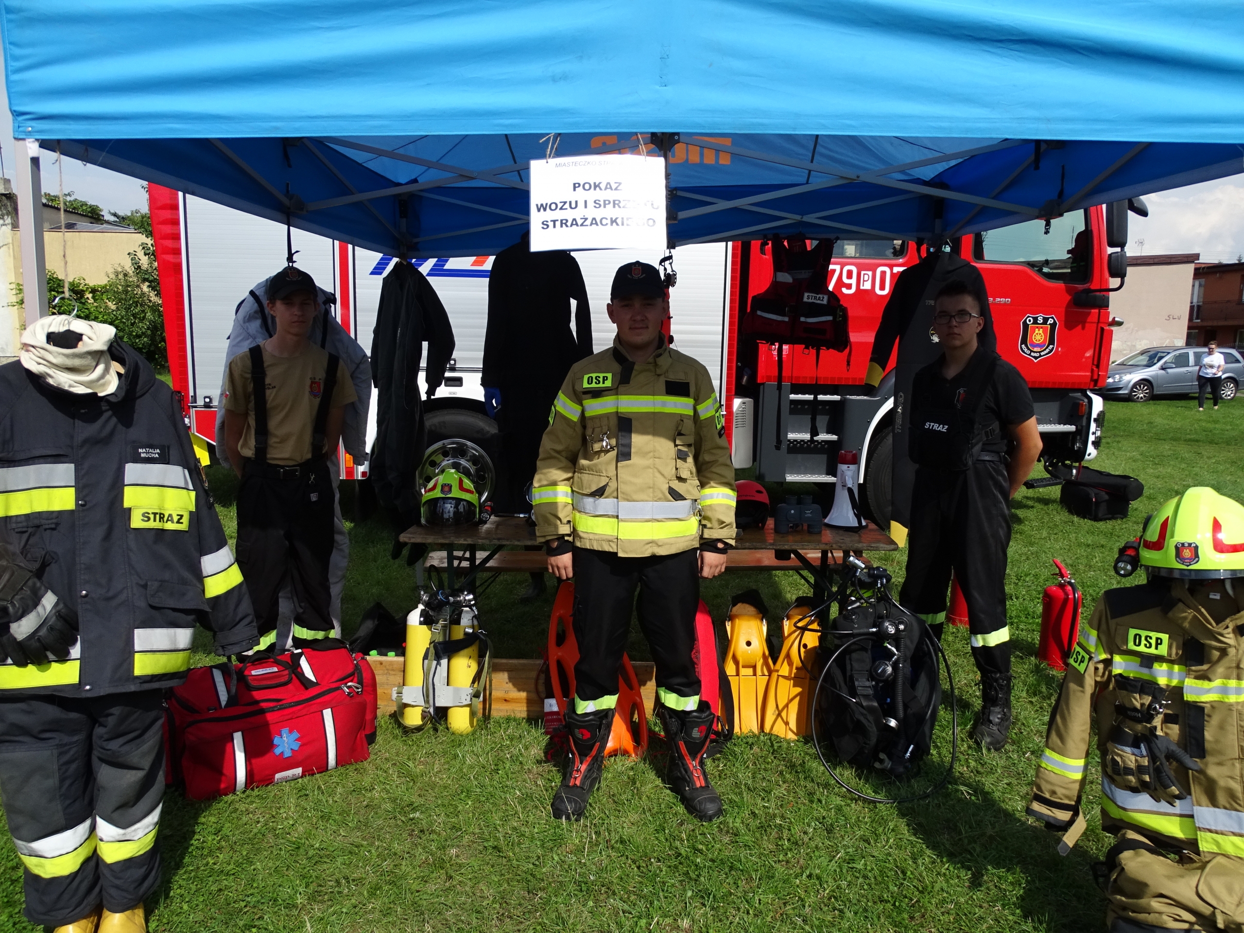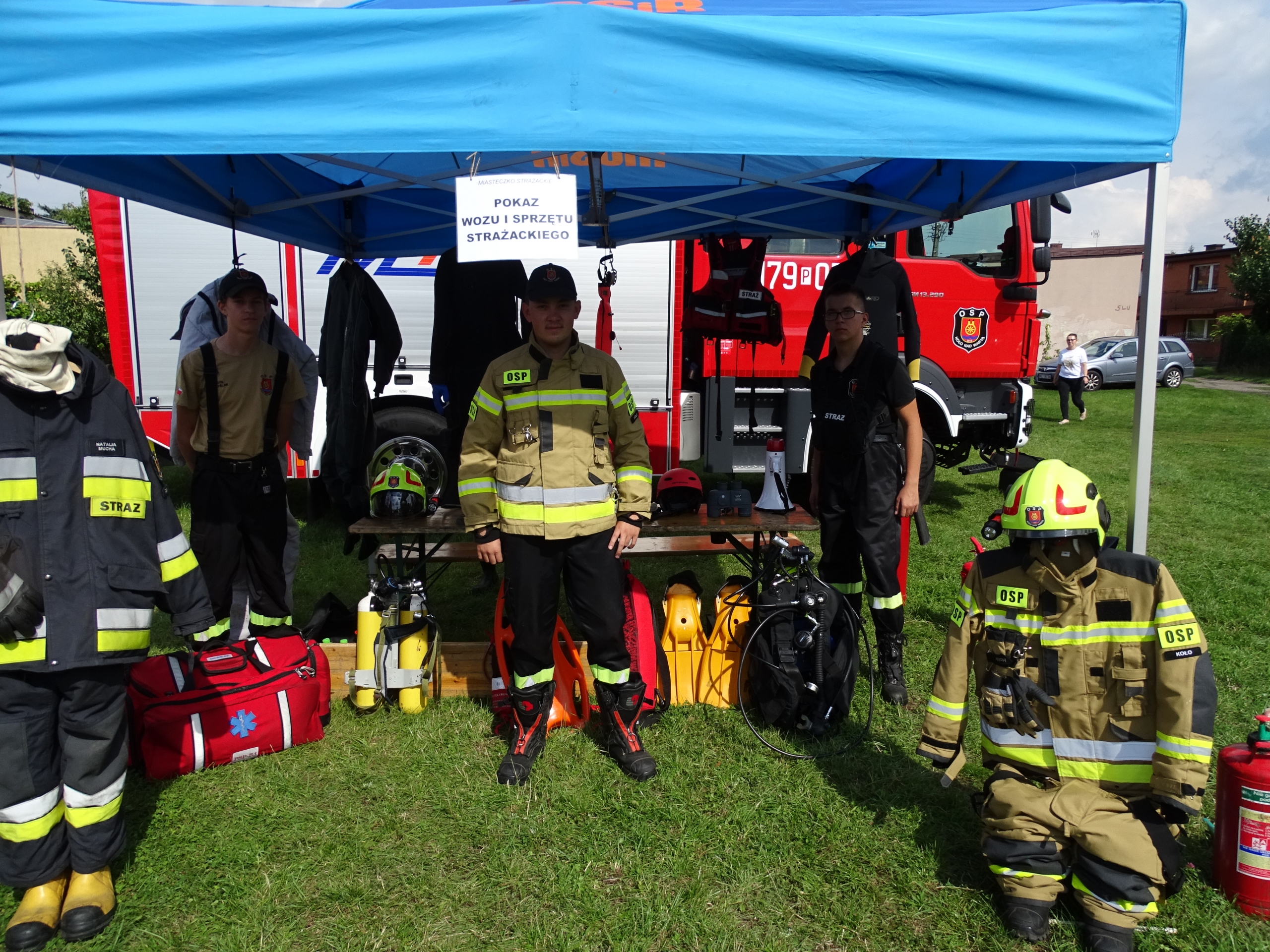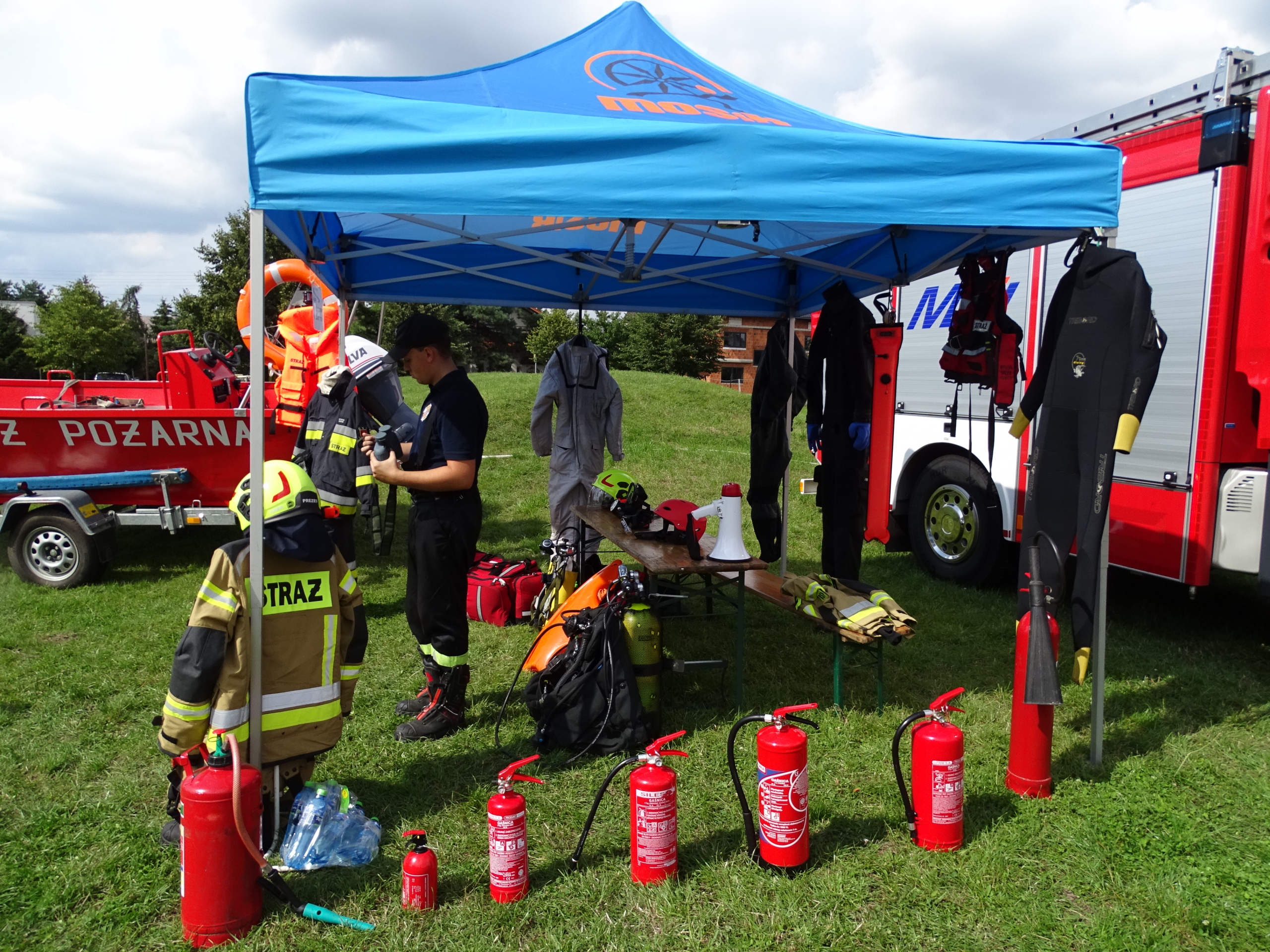 W trakcie wizyty na stoisko strażackim dzieci poznały ciekawostki związane z służbą strażaka, mogły zobaczyć i dotknąć ubiór specjalny, niezbędny sprzęt potrzebny w trakcie działań ratowniczych gaśniczych m. in. aparat ochrony dróg oddechowych, prądownice, węże pożarnicze.
