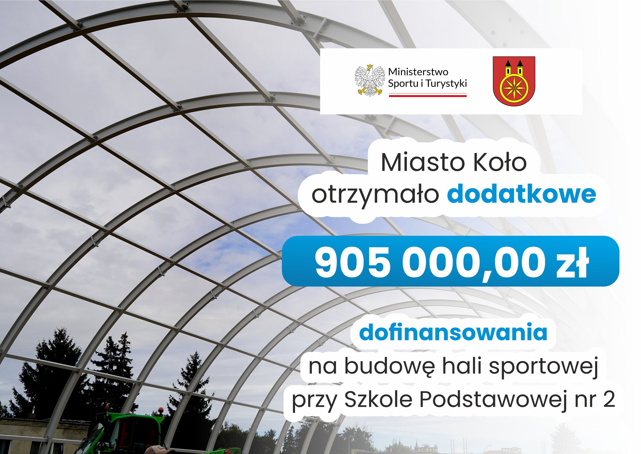 O 905 tys. zł zwiększyła się kwota dotacji z Ministerstwa Sportu i Turystyki dla miasta Koła na budowę hali sportowo-widowiskowej przy Szkole Podstawowej nr 2 w Kole.