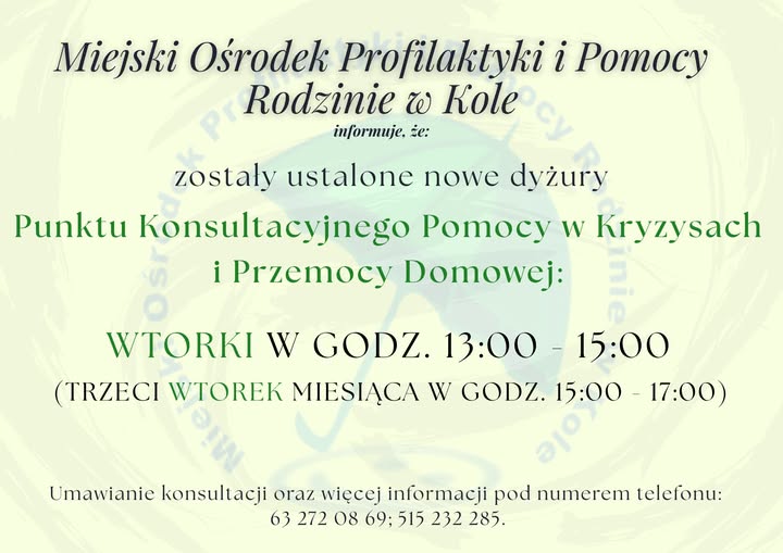 11 kwietnia, 2026 Aktualnosci Miejski Ośrodek Profilaktyki i Pomocy Rodzinie w Kole informuje! – Udostępnij: