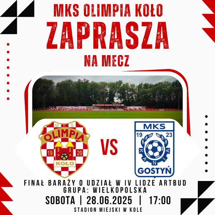24 czerwca, 2025 Aktualnosci Sport MKS Olimpia Koło zaprasza na emocjonujący mecz o Awans do IV Ligi! – Udostępnij: