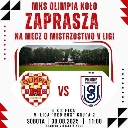 MKS OLIMPIA KOŁO zaprasza na mecz o mistrzostwo V ligi