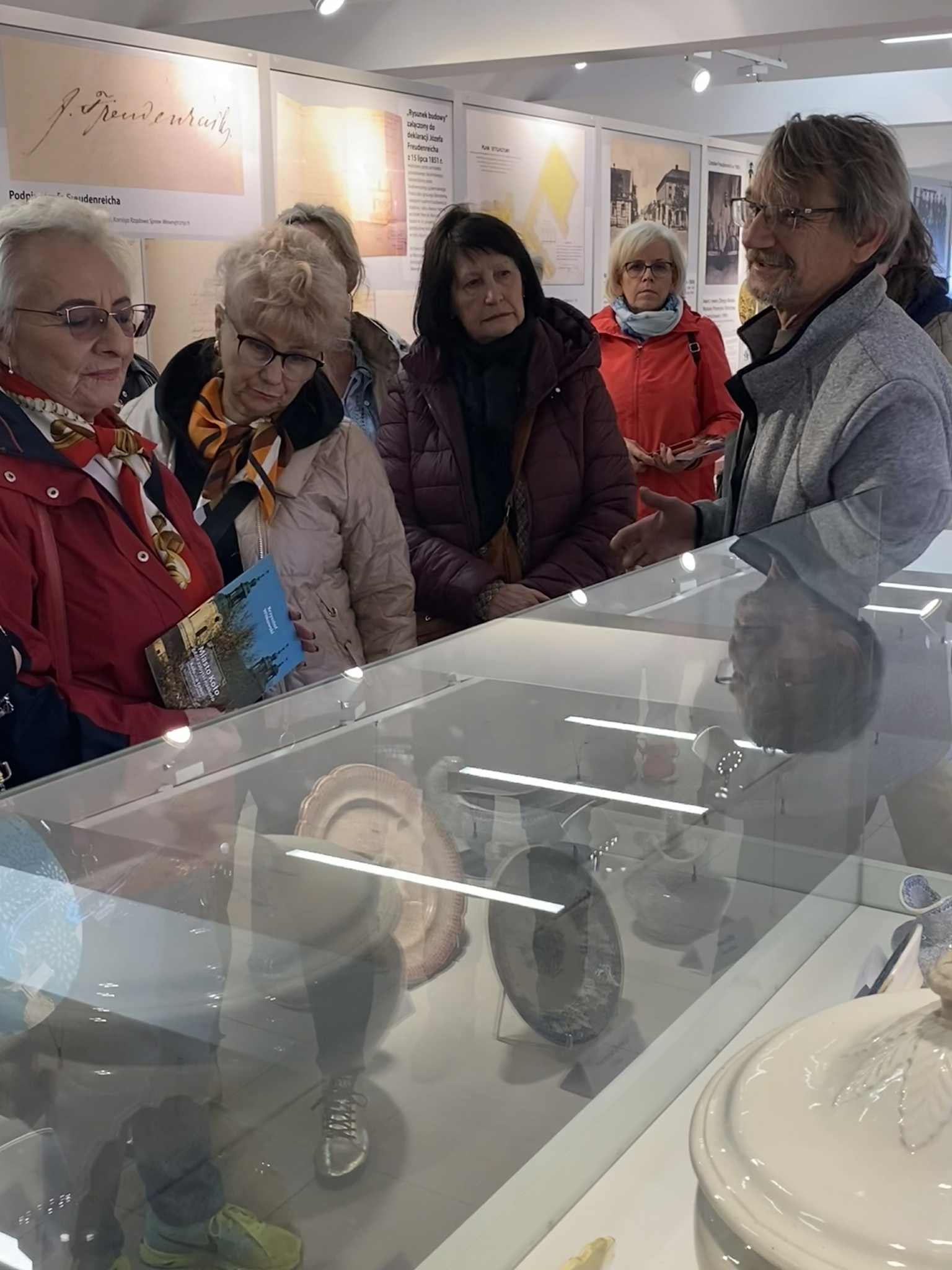 W piątek nasze Muzeum odwiedziła grupa malarek z Włocławka, członkinie Towarzystwa Miłośników Fajansu Włocławek. Wycieczka do Koła była w pewnym stopniu spotkaniem integracyjnym, gdyż do wspólnego zwiedzania zaproszono malarki z kolskiej fabryki. Powrót do przeszłości rozpoczęliśmy od wystaw czasowych w siedzibie Muzeum, następnie przenieśliśmy się do budynku ratusza, gdzie uczestniczki mogły zapoznać się z historią kolskiej fabryki na wystawie stałej. Był też czas na wspomnienia czasów kiedy oba zakłady posiadały wspólną dyrekcję. Po wspólnym obiedzie, spacer na przedmieście i budynki fabryki. Nasze malarki pokazywały miejsca w których tworzyły ceramiczne precjoza. Na koniec Ławeczka Czesława i wspólne zdjęcia.
