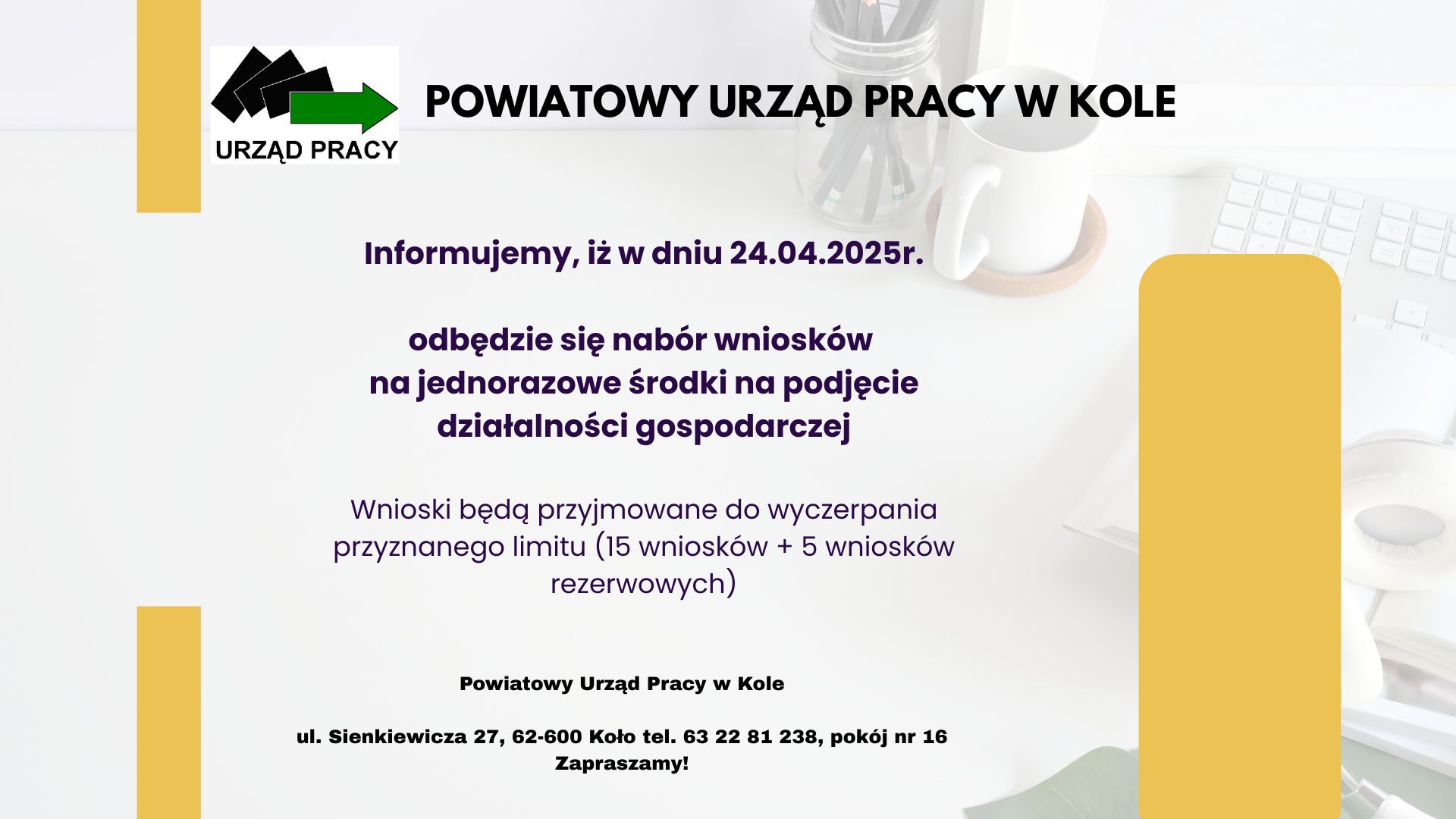 Powiatowy Urząd Pracy w Kole zaprasza do składania wniosków