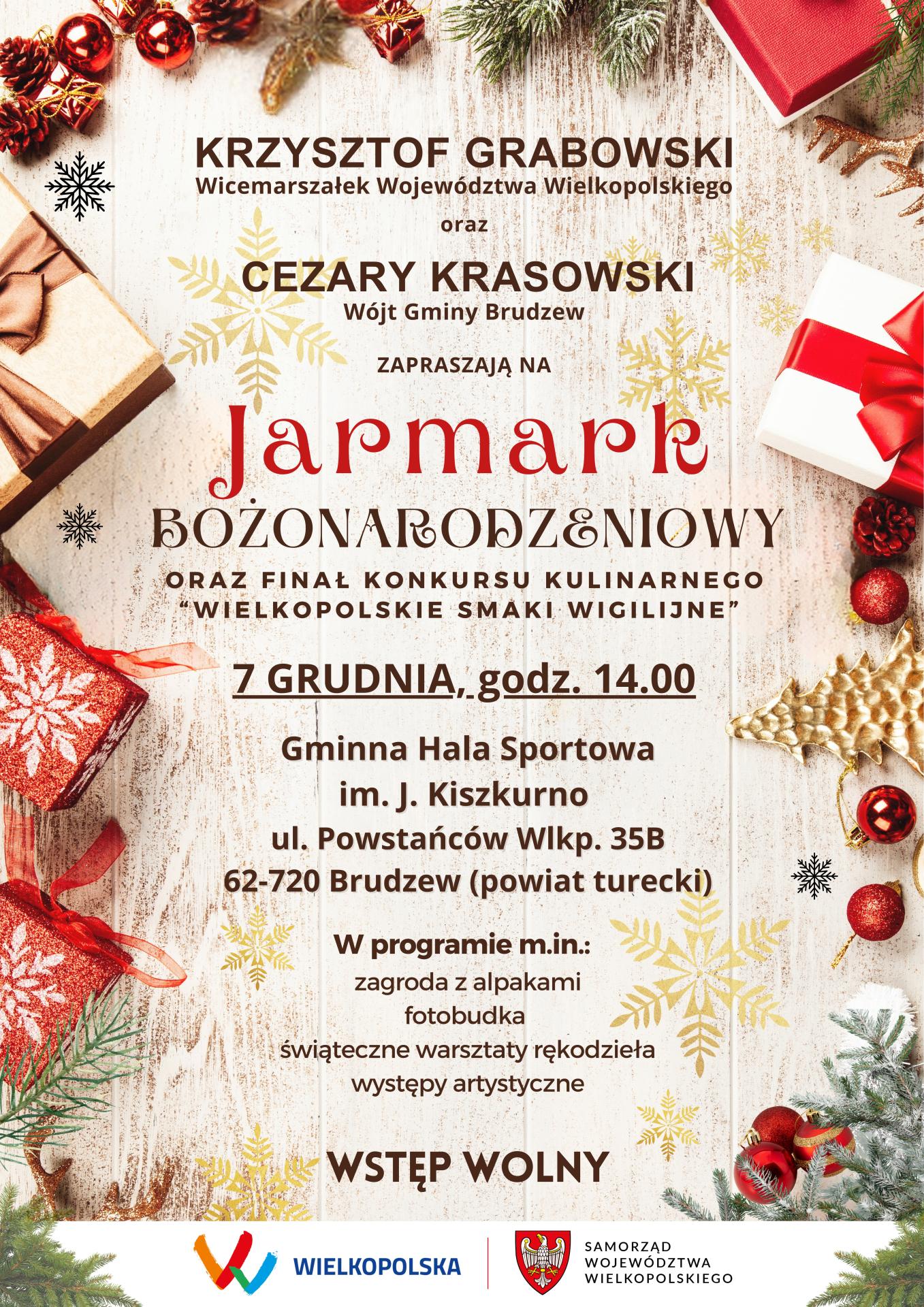 Zbliżający się okres przygotowań do Świąt Bożego Narodzenia to okazja by przypomnieć i zaprezentować bogactwo Wielkopolskiej Kuchni związane z tradycjami tego okresu. Organizowana przez Samorząd Województwa Wielkopolskiego trzecia edycja konkursu „Wielkopolskie Smaki Wigilijne” to doskonała forma promocji Regionu, swojej lokalnej tradycji i poznania nowych świątecznych smaków. Jarmark oraz finał konkursu odbędzie się w sobotę 7 grudnia w Gminnej Hali Sportowej w Brudzewie, gdzie na odwiedzających czeka wiele atrakcji, nie tylko kulinarnych. – mówi Wicemarszałek Województwa Wielkopolskiego Krzysztof Grabowski