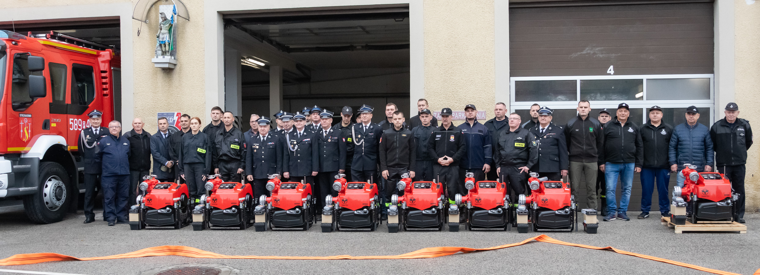 24 października 2025 r. w OSP Strzałkowo druhowie z OSP Barłogi odebrali nową przenośną motopompę pożarniczą