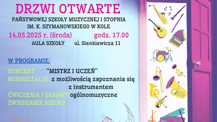 Państwowa Szkoła Muzyczna im. Karola Szymanowskiego w Kole zaprasza na Drzwi Otwarte!