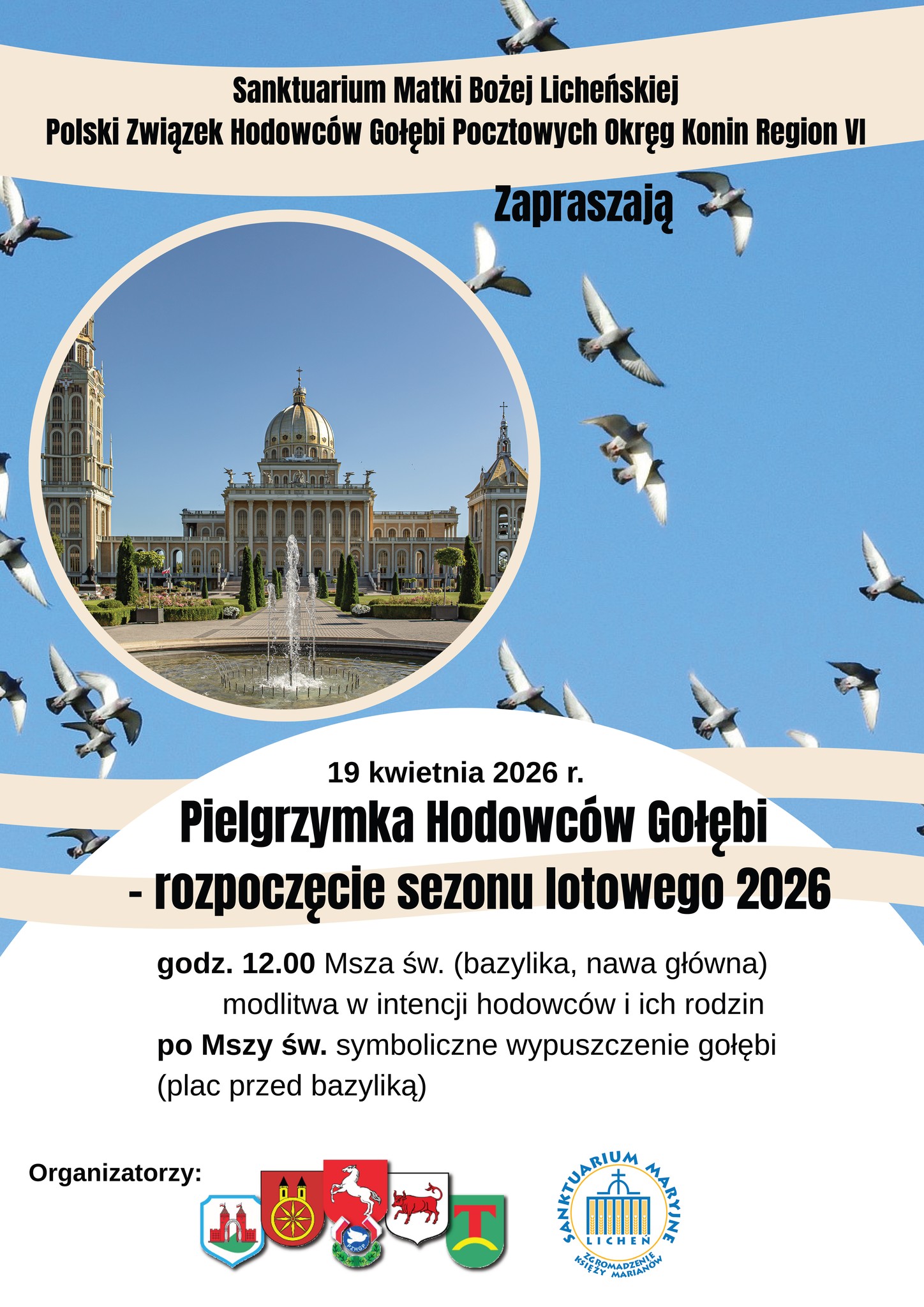Jeśli tak, z ogromną radością zapraszamy na I Pielgrzymkę Hodowców Gołębi Pocztowych, która odbędzie się 19 kwietnia 2026 r. w sanktuarium Matki Bożej Licheńskiej.