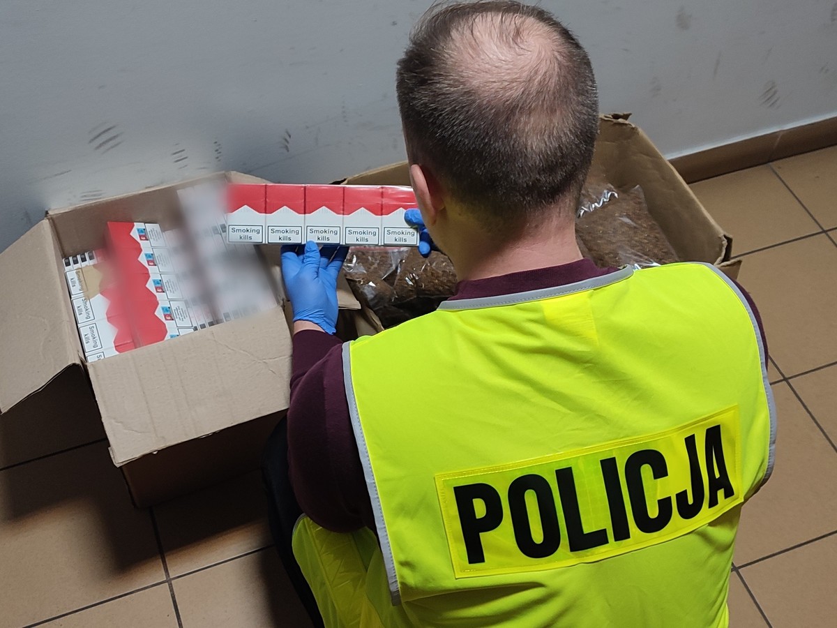 Do zatrzymania doszło w miniony piątek, 10 października. Funkcjonariusze, działając na podstawie wcześniej zebranych informacji, przeszukali mieszkanie mężczyzny. W trakcie czynności ujawnili i zabezpieczyli ponad 30 000 sztuk papierosów bez polskich znaków akcyzy oraz blisko 8,5 kilograma krajanki tytoniowej.