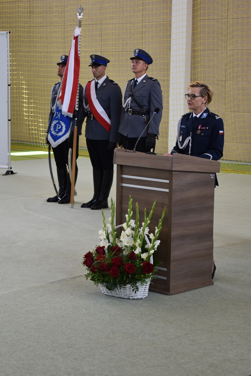 Zastępca Komendanta Wojewódzkiego Policji w Poznaniu podinsp. Violetta Mójta w swoim przemówieniu podkreśliła, że bycie policjantem to służba, w której zdarza się, że funkcjonariusze płacą najwyższą cenę – swojego życia. Słowa wdzięczności skierowała również do wszystkich osób, samorządowców, pozostałych służb, które wspierają kolską Policję w działaniach na rzecz bezpieczeństwa powiatu.