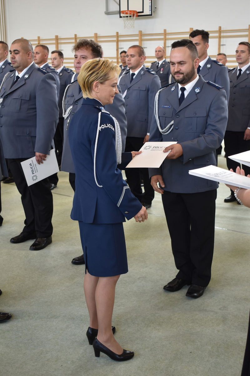Głównym punktem uroczystości było wręczenie policjantkom i policjantom awansów na wyższe stopnie służbowe. Łącznie mianowanych zostało 71 funkcjonariuszy kolskiej jednostki.