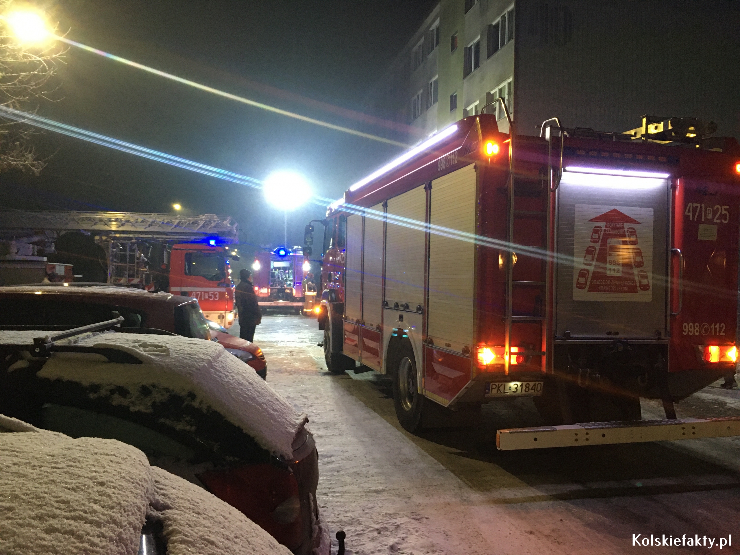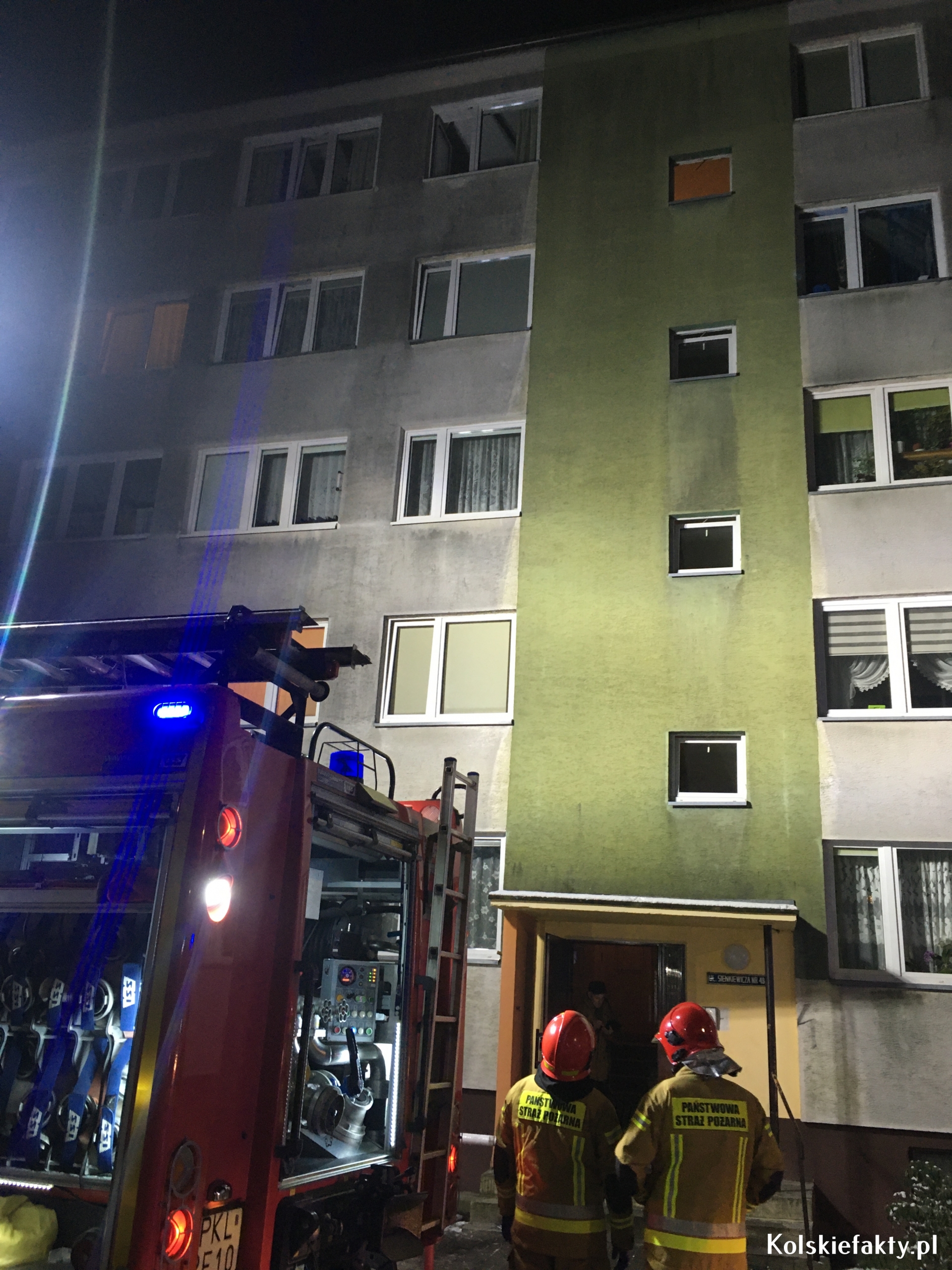W dniu dzisiejszym w godzinach wieczornych doszło do pożaru mieszkania w Kole na ul.Sienkiewicza (trzecie piętro).Prawdopodobnie zaprószenie ognia powstało od papierosa,w wyniku czego zapaliła się wersalka.Na miejscu pojawiły się służby ratunkowe i Policja,które przeprowadziły swoje czynności.Jedna osoba poszkodowana została przewieziona do szpitala.Trwa postępowanie wyjaśniające okoliczności tego zdarzenia. Należy tu wspomnieć o bardzo dużym szczęściu i przede wszystkim czujności lokatorów, którzy natychmiast zaalarmowali odpowiednie służby.