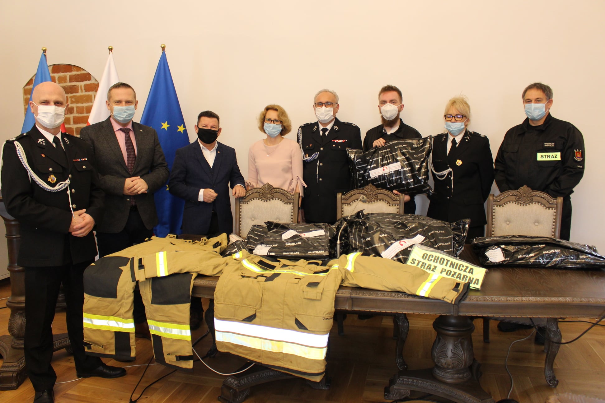 Dzisiaj w sali sesyjnej kolskiego rausza Gmina Miejska Koło przekazała Ochotniczej Straży Pożarnej Koło nad Wartą ubrania specjalne NOMEX zakupione w ramach dotacji z Ministerstwa Sprawiedliwości na powierzenie realizacji zadań z Funduszu Pomocy Pokrzywdzonym oraz Pomocy Postpenitencjarnej – Funduszu Sprawiedliwości w zakresie Wsparcia i rozwoju systemu instytucjonalnego pomocy osobom pokrzywdzonym przestępstwem i świadkom oraz realizacji przez jednostki sektora finansów publicznych zadań ustawowych związanych z ochroną interesów osób pokrzywdzonych przestępstwem i świadków oraz likwidacją skutków pokrzywdzenia przestępstwem.