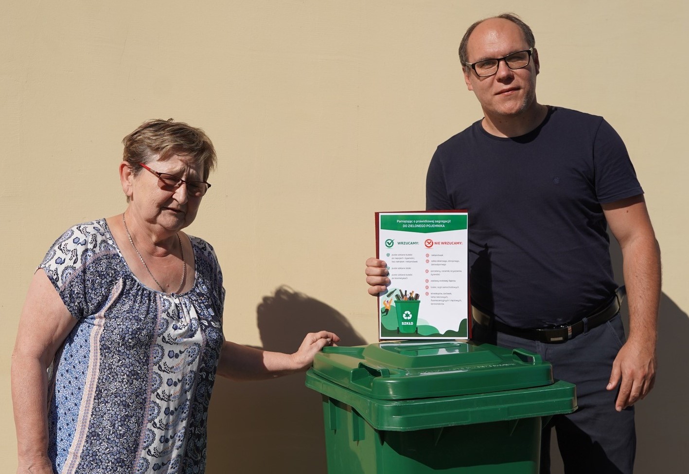 Dziś radny dokonał symbolicznego przekazania czwartego już zielonego, 120-litrowego pojemnika na szkło. Nową posiadaczką kontenera została pani Alicja, mieszkanka ul. Toruńskiej.