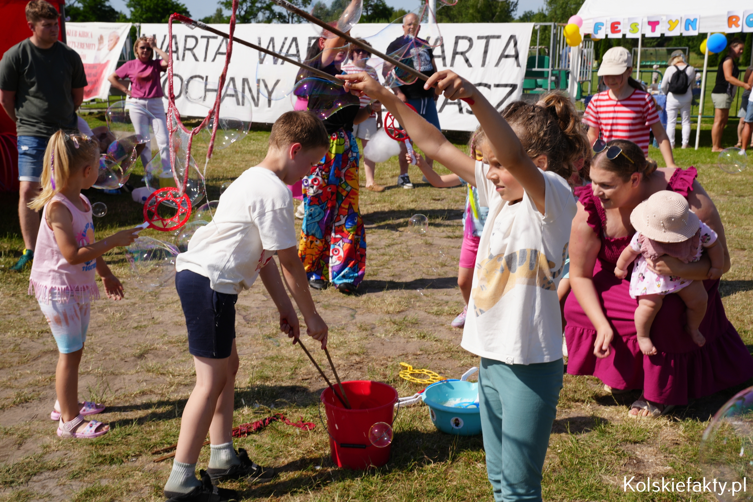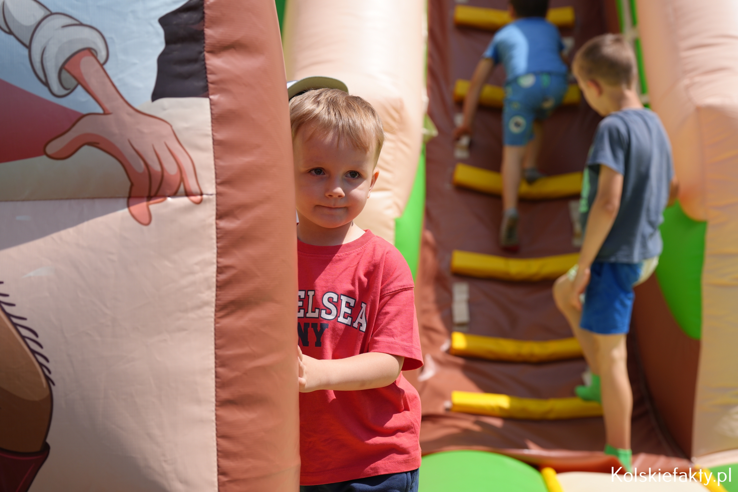 Na uczestników czekało mnóstwo atrakcji – zarówno dla najmłodszych, jak i dorosłych. Kolorowe dmuchańce, stoiska z warkoczykami, tatuażami i makijażem przyciągały tłumy dzieci, które z nieukrywaną radością oddawały się zabawie. Dużym powodzeniem cieszyły się również animacje prowadzone przez energiczne panie animatorki oraz widowiskowy pokaz baniek mydlanych, który wywoływał zachwyt na twarzach najmłodszych.