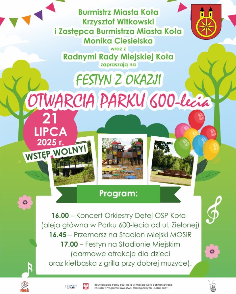 15 lipca, 2025 Aktualnosci Serdecznie zapraszamy na wielkie otwarcie zrewitalizowanego Parku 600-lecia w Kole! – Udostępnij: